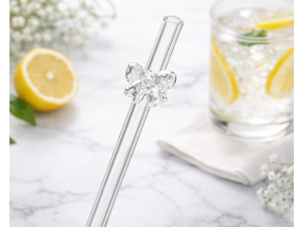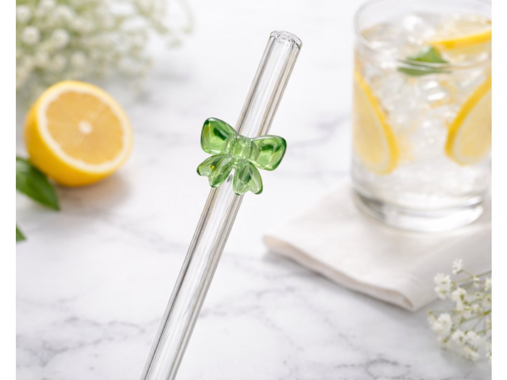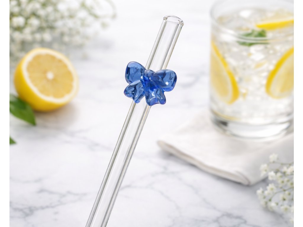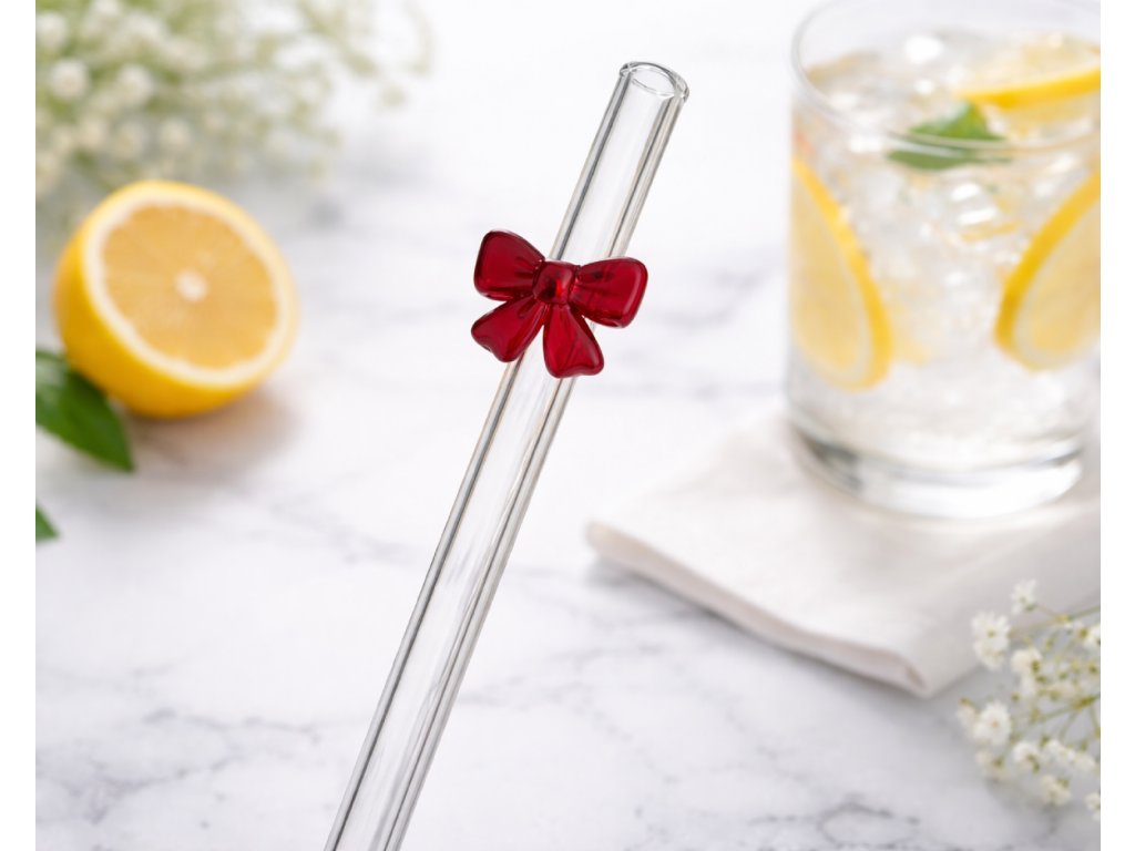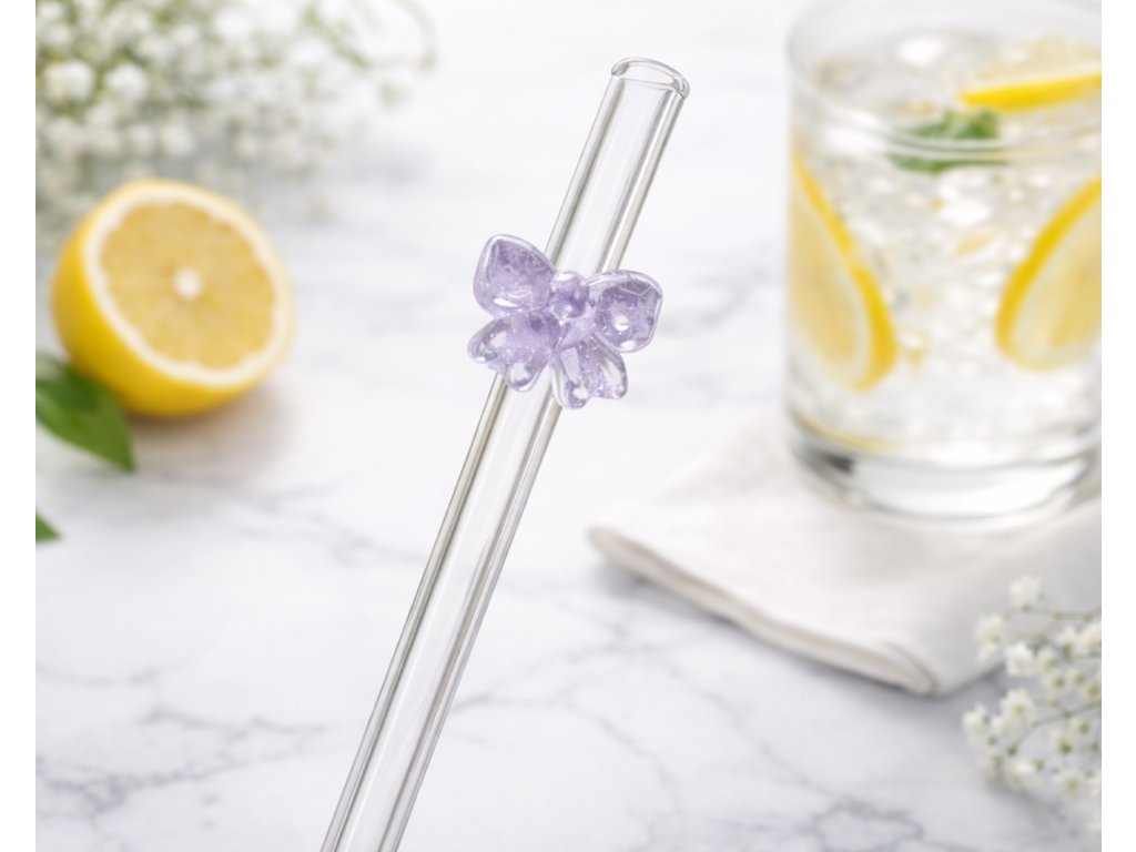 🎀 Skleněné brčko s mašličkou – roztomilý doplněk ke každému drinku