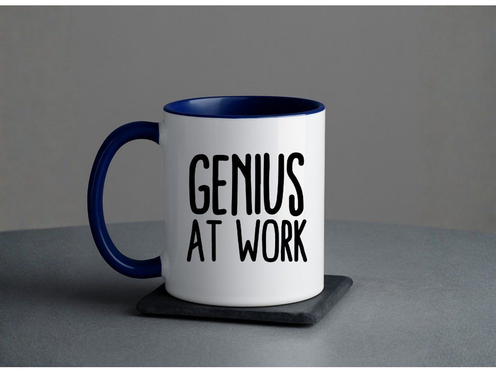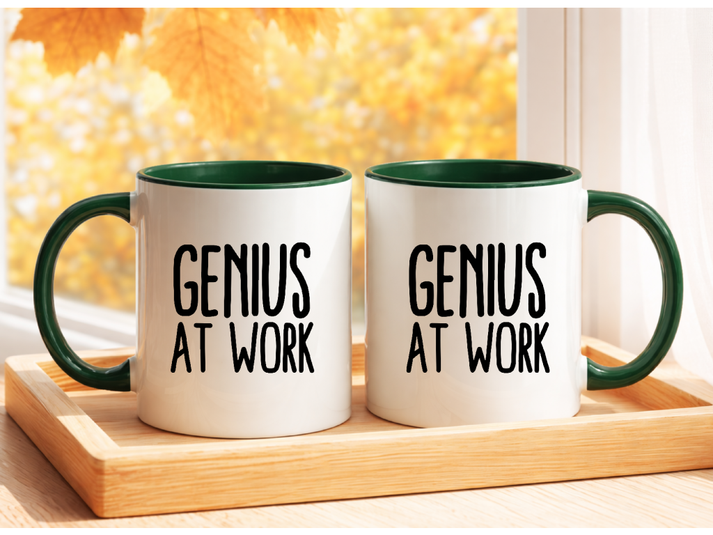 🧠💡 GENIUS AT WORK – jednoduchý a výstižný nápis, který řekne všechno za vás. Ať už pracujete z domova, z kanceláře nebo z kavárny, tenhle hrnek jasně dává najevo, že kolem vás to zkrátka “bzučí intelektem”.