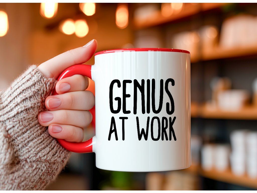 Hrnek s nápisem GENIUS AT WORK