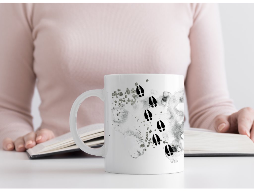 330 ml - Hrnek s jelenem a stopami - originální dárek ze Šumavy. Více barev hrnku