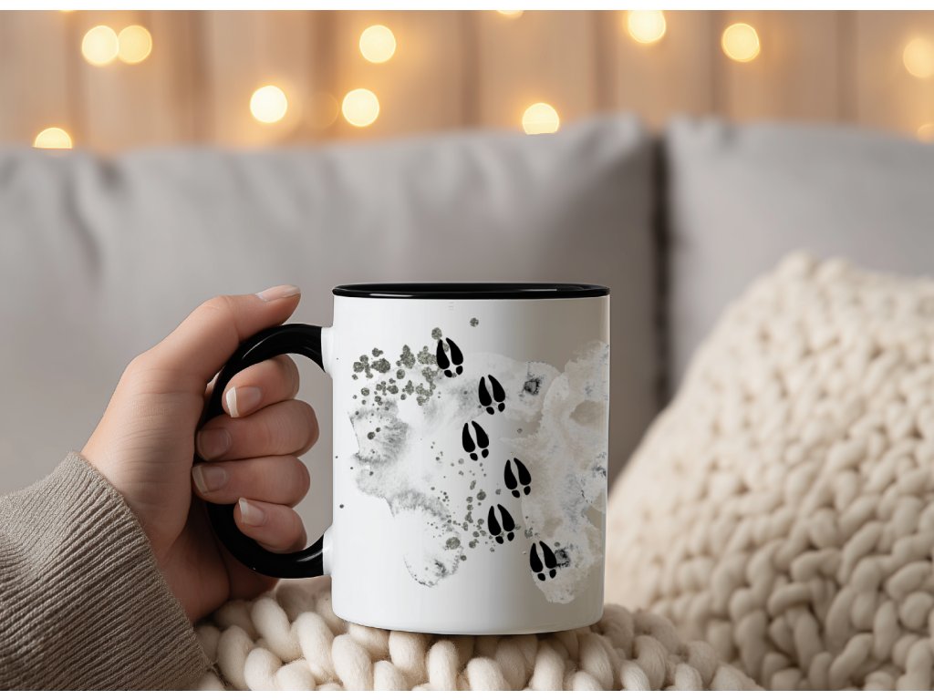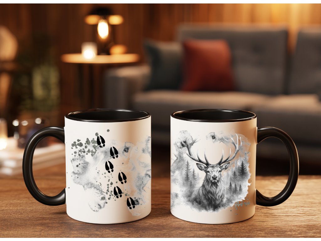 Díky černému oušku a vnitřku má hrnek elegantní vzhled, který ladí s výrazným černobílým potiskem jelena. Každý motiv je natištěn ručně v mé šumavské dílně a zaručuje dlouhou životnost – potisk se neoloupe a je odolný vůči mytí.
