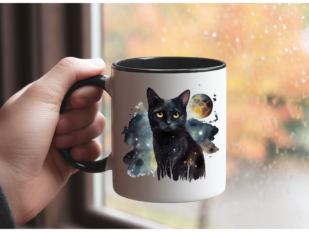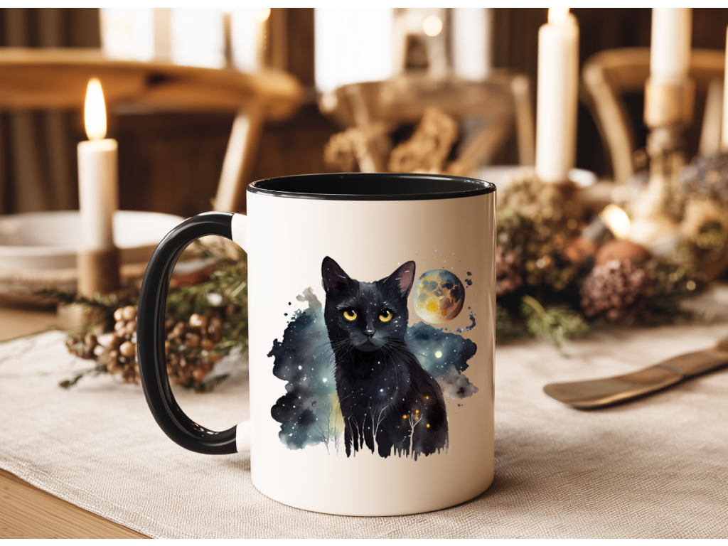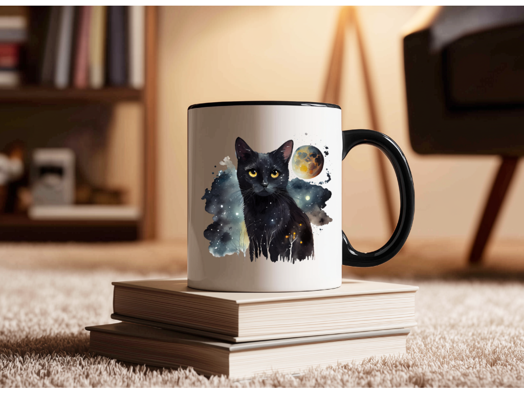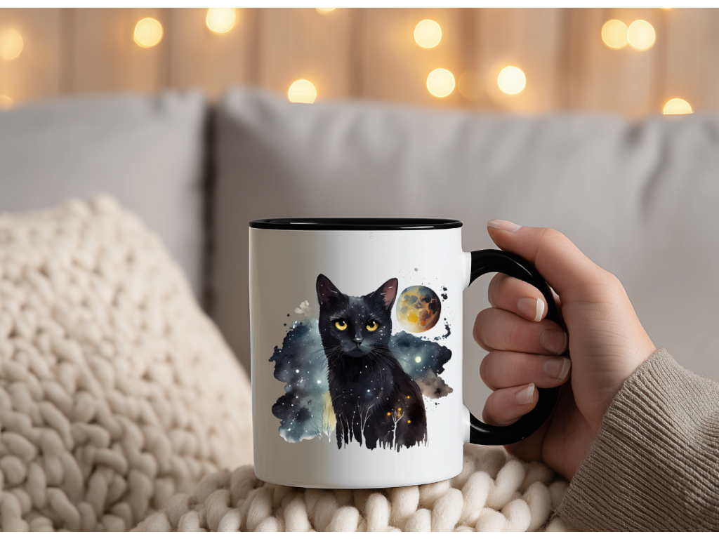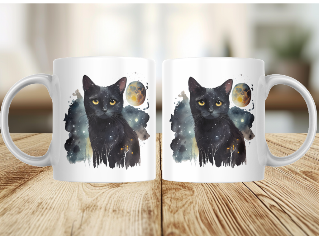 Pro všechny milovníky koček a vesmírného tajemství je tady jedinečný hrnek s designem tajemné černé kočky, která v sobě nese hloubku hvězdné oblohy. 🐈⬛🌟