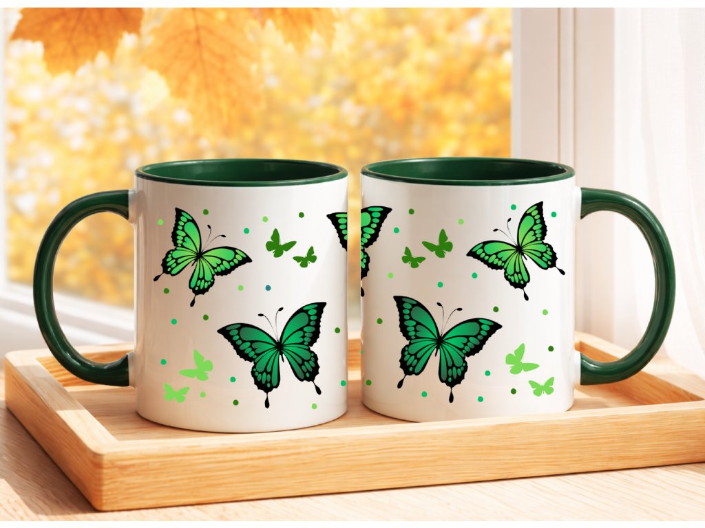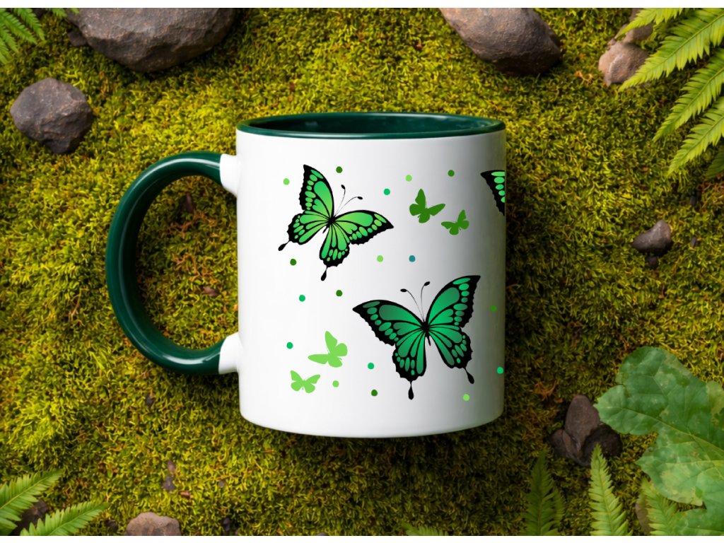 - Hrnek se zeleným vnitřkem a ouškem - zelení motýlci