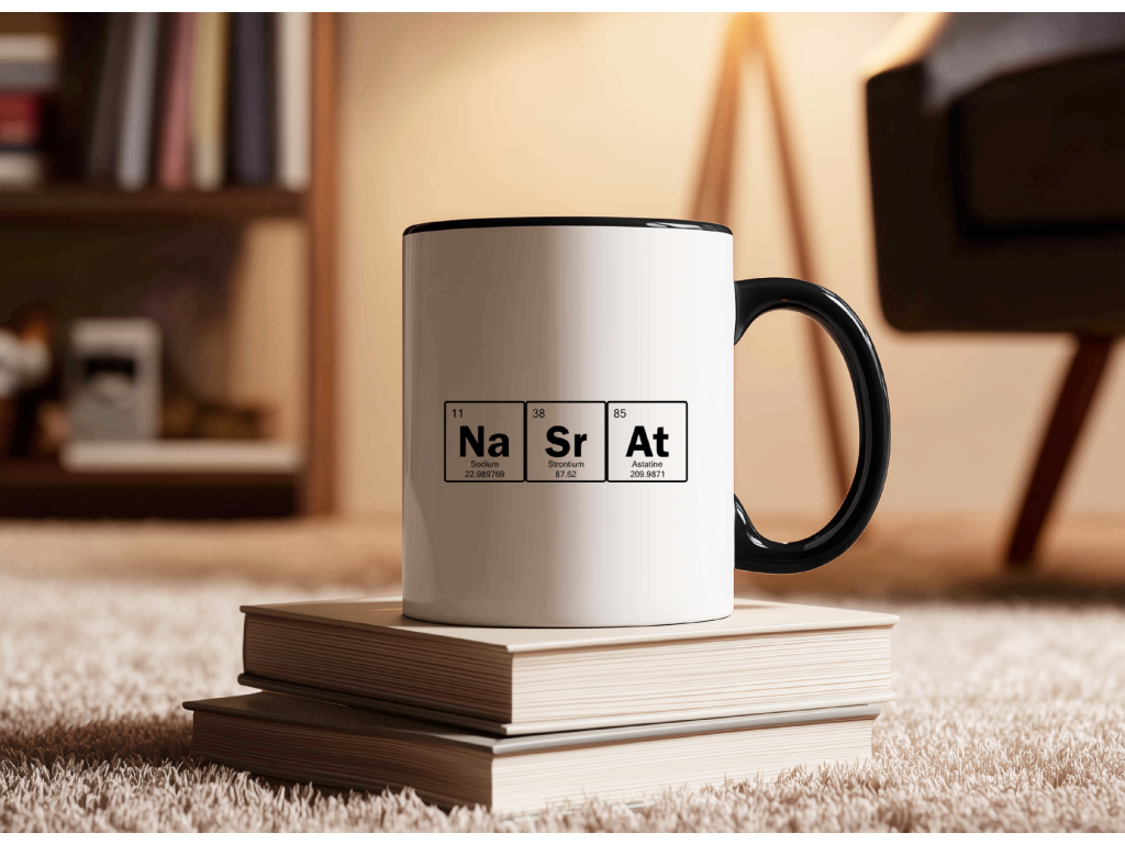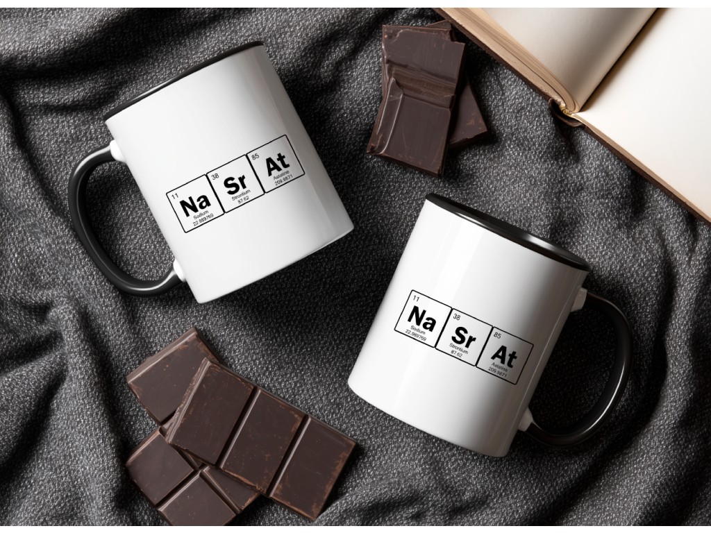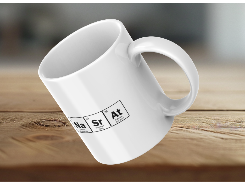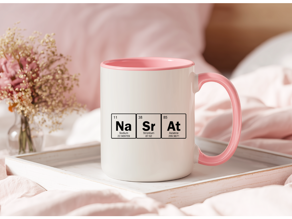 Originální hrnek s nápisem Nasrat stylizovaným jako chemické prvky potěší milovníky ironie, sarkasmu a vtipných motivů. Barevné varianty: ⬜ ⬛ 🌸