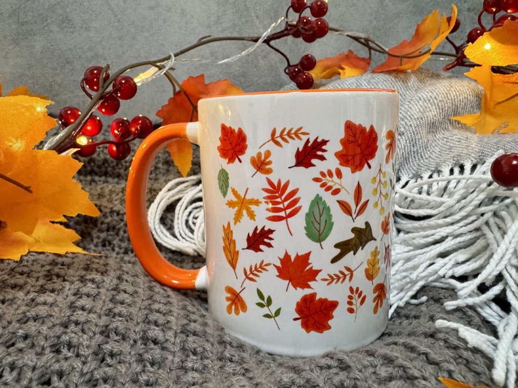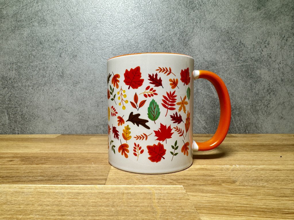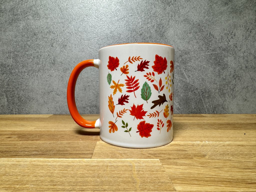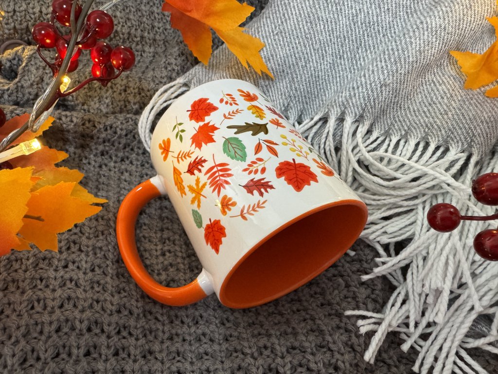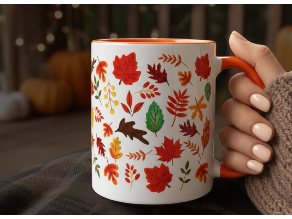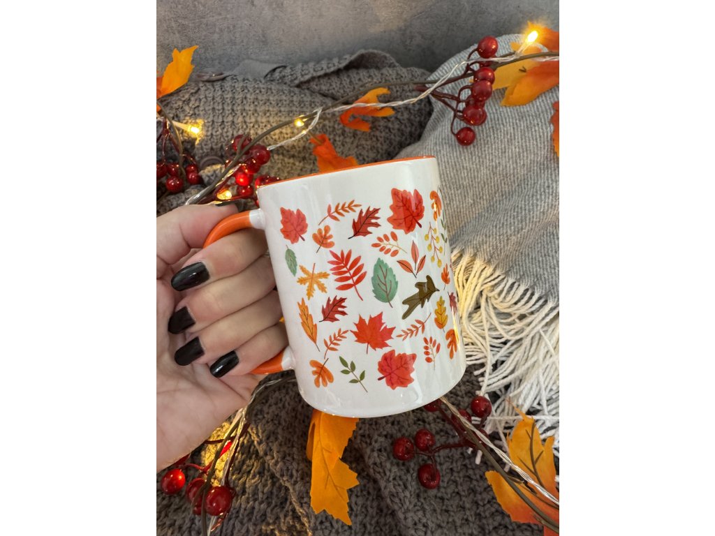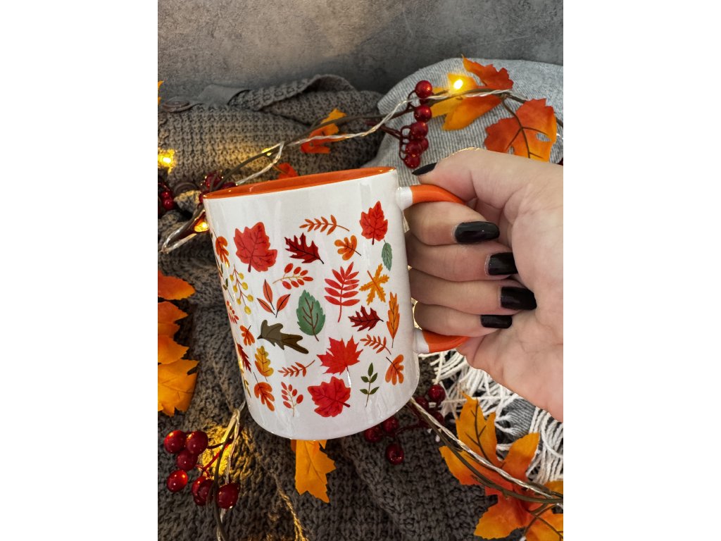 2. Hrnek s podzimním potiskem - Podzimní Listí - oranžový vnitřek a ouško