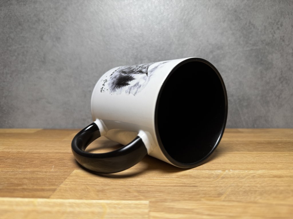 Hrnek má černé ouško i vnitřek, což dodává designu kontrast a jedinečný vzhled. Je ideální na ranní kávu, čaj i večerní kakao – ať už doma, v práci nebo jako dárek.