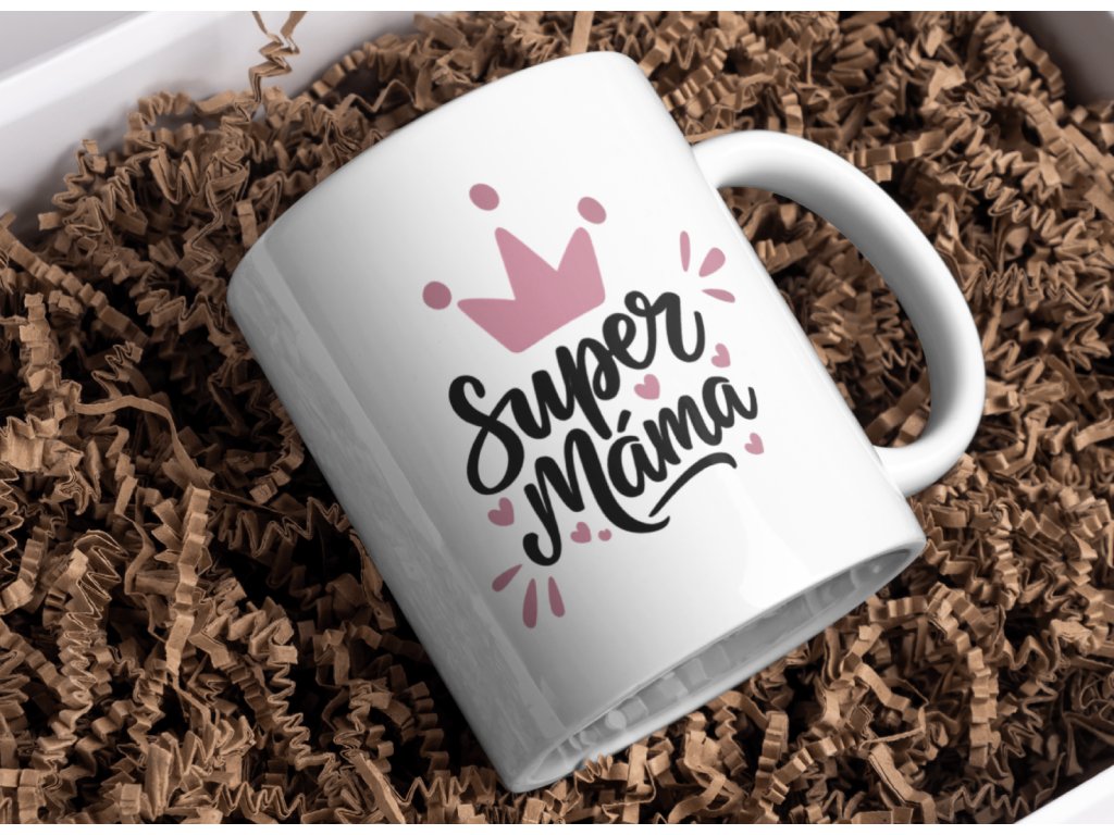 Pro maminku, která je prostě královna 👑 Hrnek s nápisem Super máma a roztomilými srdíčky – ve 2 variantách.