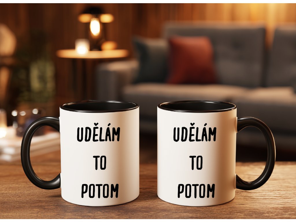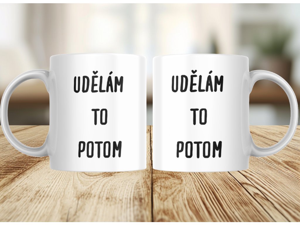 ⏳ „UDĚLÁM TO POTOM.“ Věta, která říká naprosto všechno – a zároveň nic. Ideální pro každého, kdo ovládá umění odkládání povinností, ať už v práci, ve škole nebo doma. Tento hrnek s nápisem Udělám to potom je výmluvou i výstrahou v jednom – a navíc se do něj vejde káva, která prokrastinaci povyšuje na rituál.