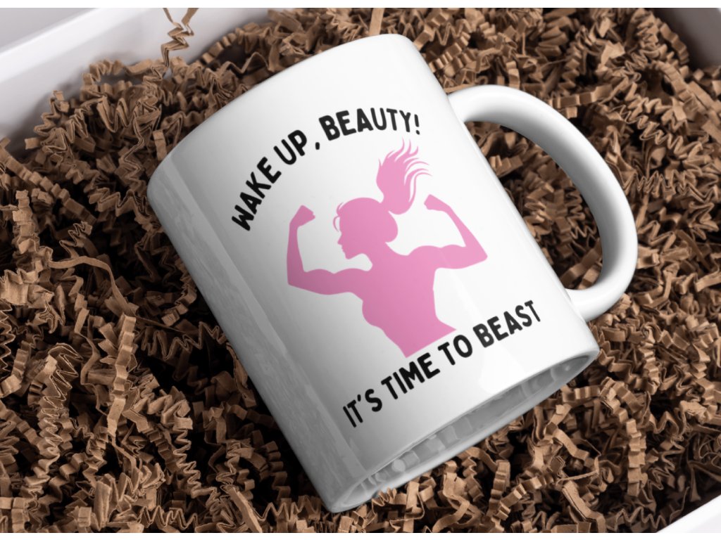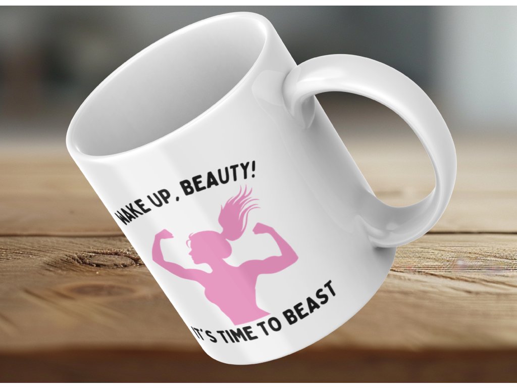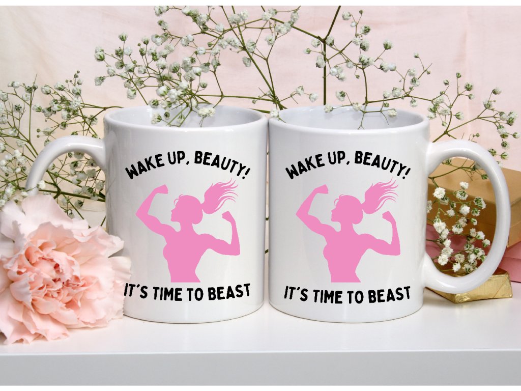 330 ml - Fitness hrnek pro silné ženy - Wake Up, Beauty! It’s Time to Beast