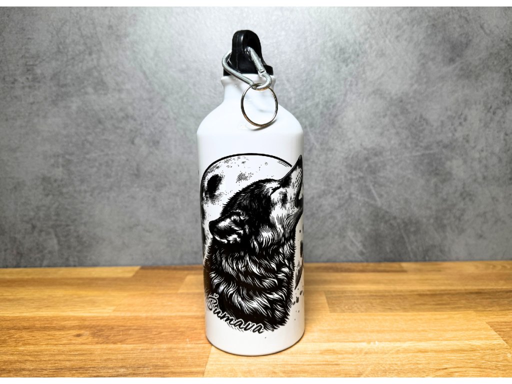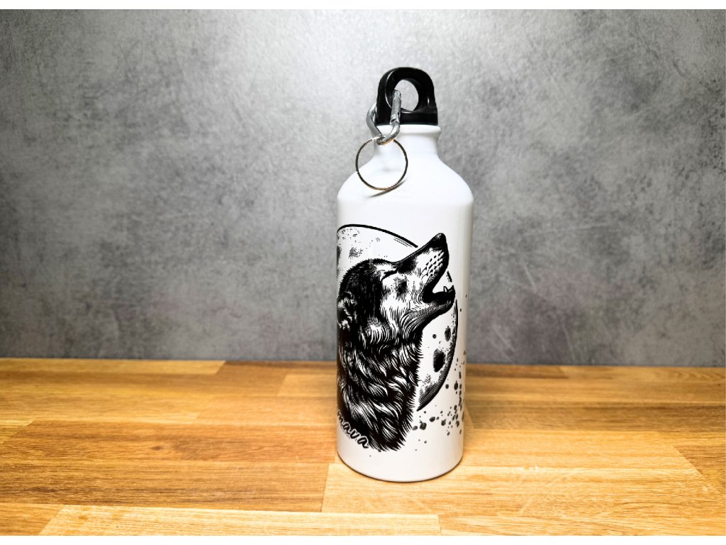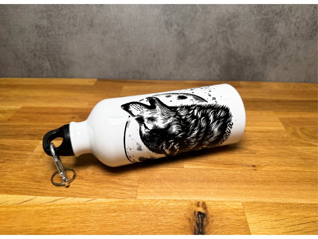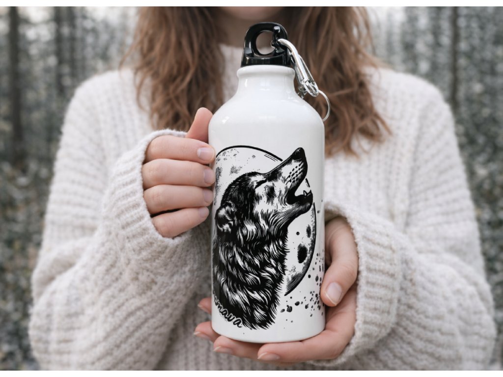 Lehká turistická lahev s výrazným černobílým motivem vlka 🐺 Stylový doplněk pro milovníky přírody, lesa a divoké symboliky – ideální na výlety, do práce i jako dárek.
