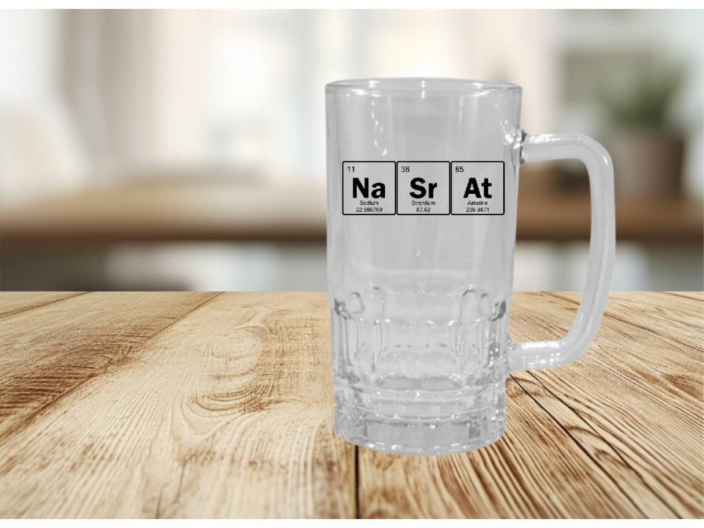 Vtipný půllitr „NaSrAt“ ve stylu periodické tabulky – ideální dárek pro parťáka na pivo 🍺😄