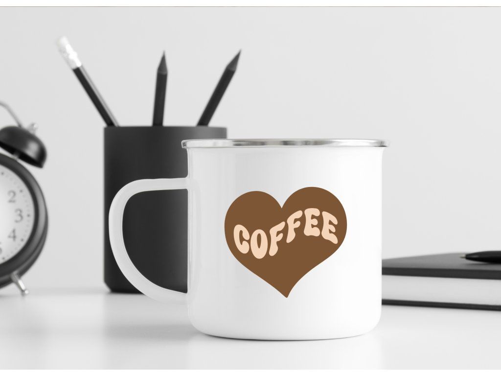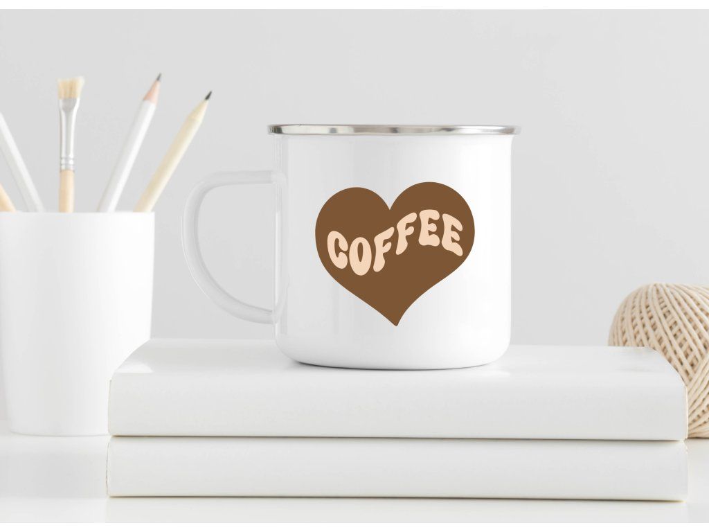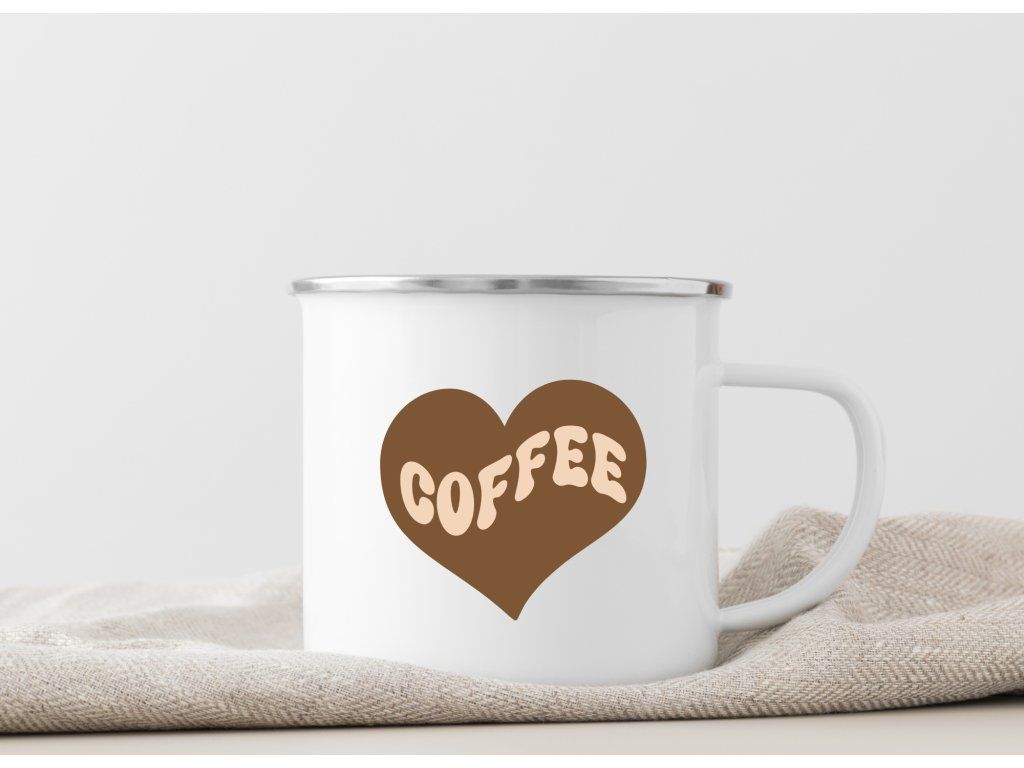 Stylový plecháček s motivem srdce a nápisem Coffee potěší každého milovníka kávy, jednoduchého designu a hřejivých detailů. Skvěle se hodí na doma, do práce i na cesty.
