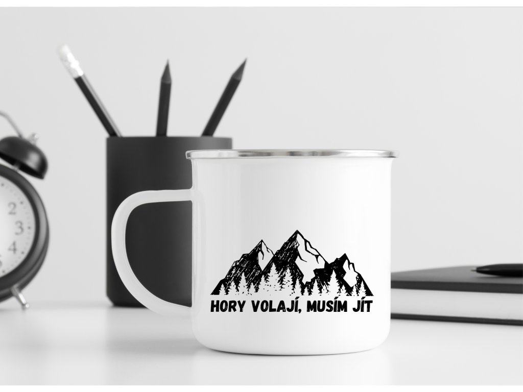 Smaltovaný hrnek - Hory volají, musím jít