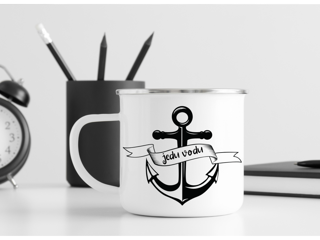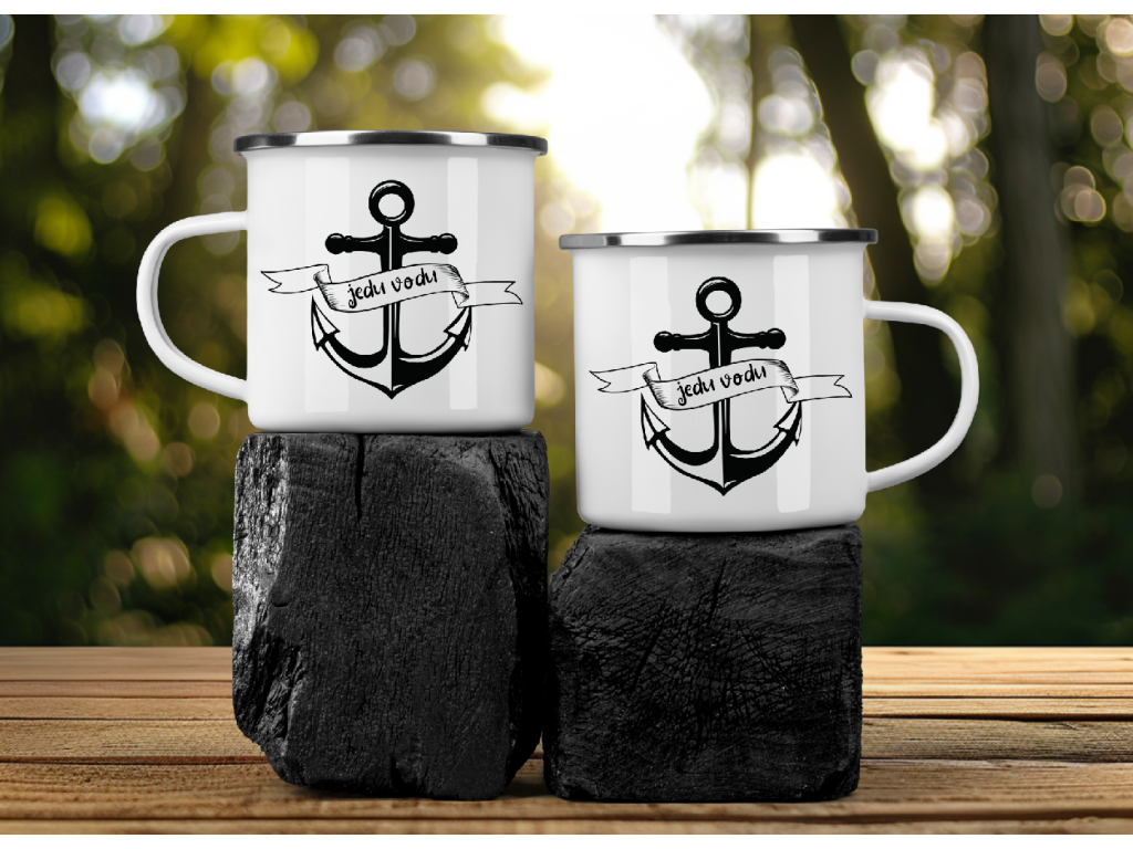 Bílý plecháček s motivem kotvy a nápisem „jedu vodu“ potěší každého, kdo miluje řeku, vodácké výpravy a pohodovou atmosféru letních dní 🚣 Jednoduchý, ale výrazný design z něj dělá skvělý doplněk na sjíždění řek, do kempu, na chatu i na běžné používání doma. Plecháček je ideální na ranní kávu, čaj i večerní posezení po dni stráveném na vodě.