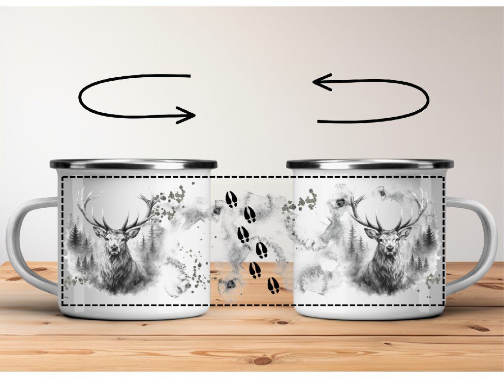 Stylový smaltovaný plecháček s jelenem v jemném akvarelovém provedení 🦌🤍 Ideální na kávu v přírodě i doma.