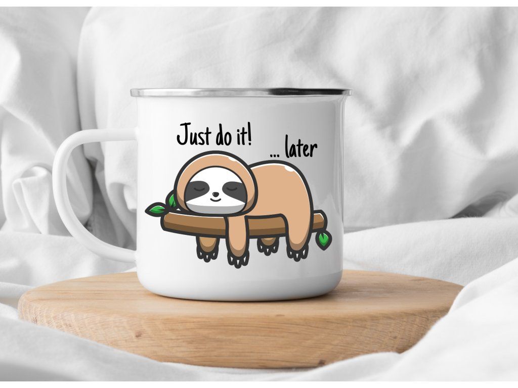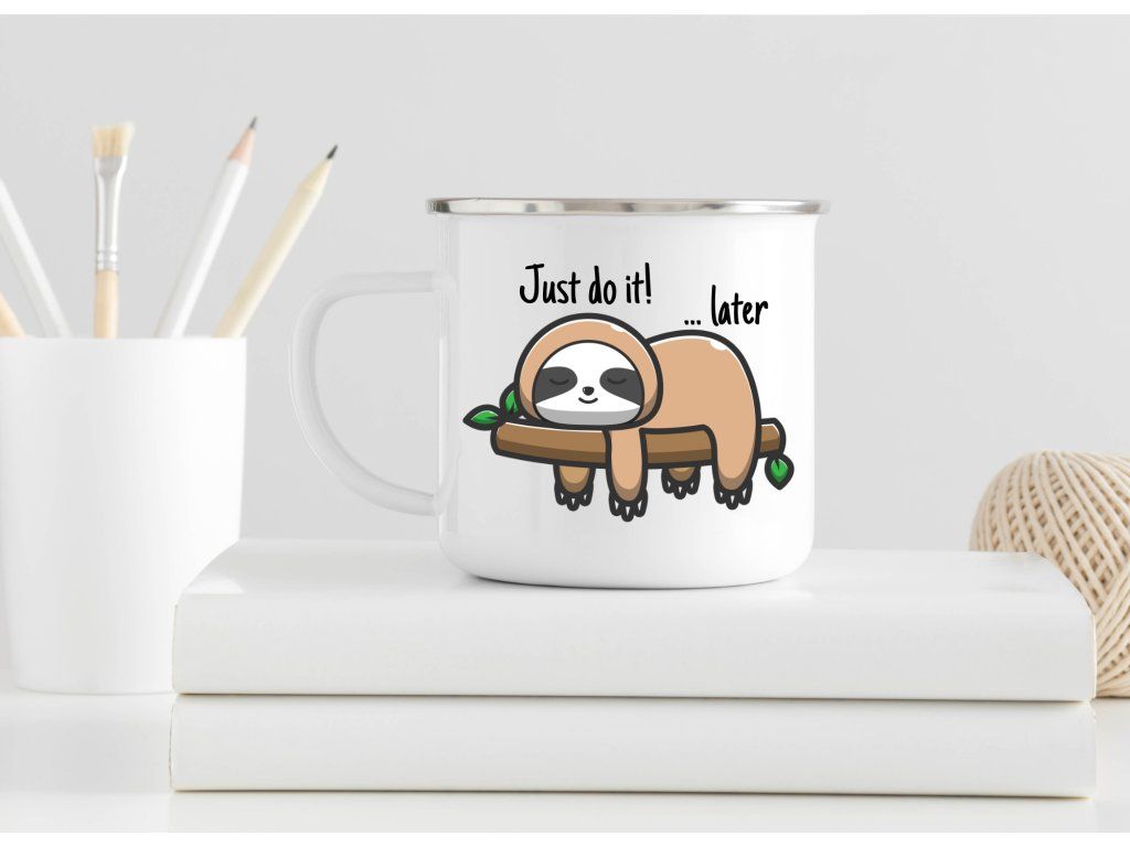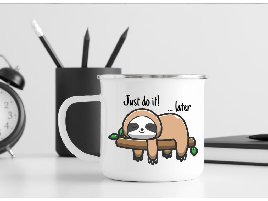 Motiv Just do it… later ocení všichni milovníci humoru, lenochodů a pohodového životního stylu. Tento plecháček je skvělou volbou pro ty, kdo neberou život až tak vážně a mají rádi milé produkty s nadsázkou. Zároveň poslouží jako krásný a vtipný dárek pro kamarádku, kolegu, partnera nebo kohokoliv, kdo se v tomhle hesle trochu pozná.