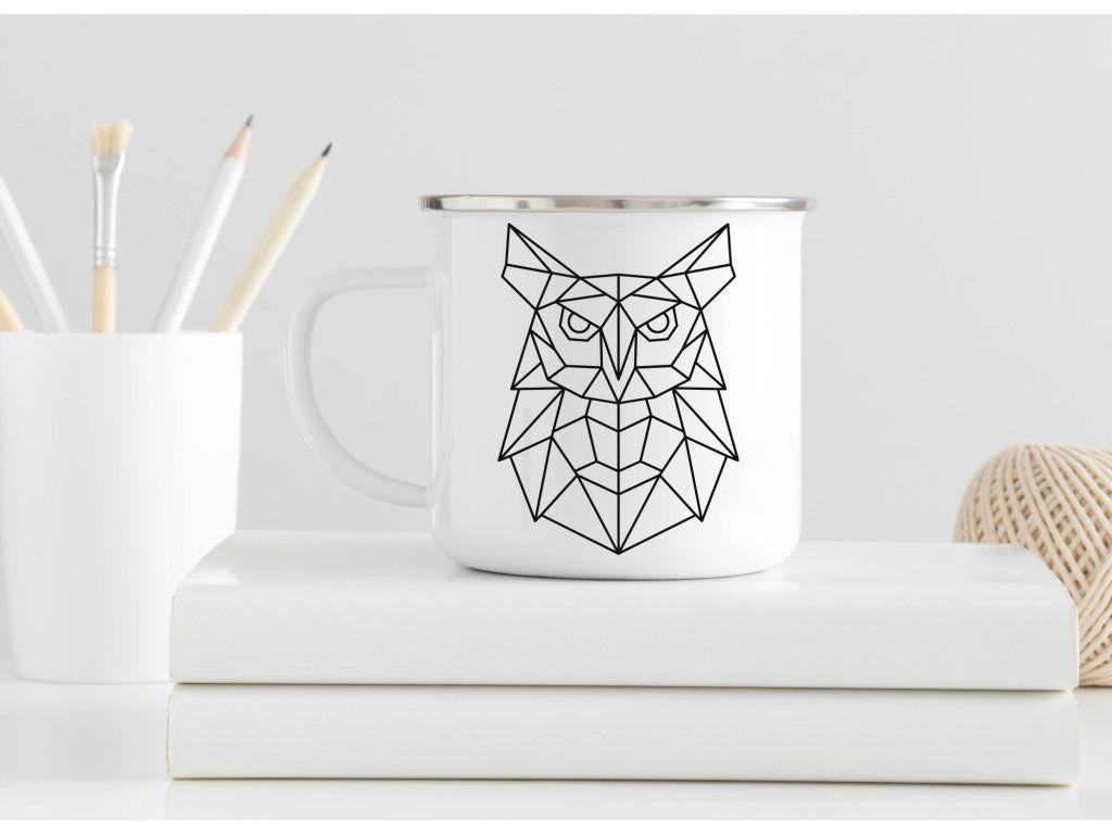 Smaltovaný plecháček se sovou - geometric