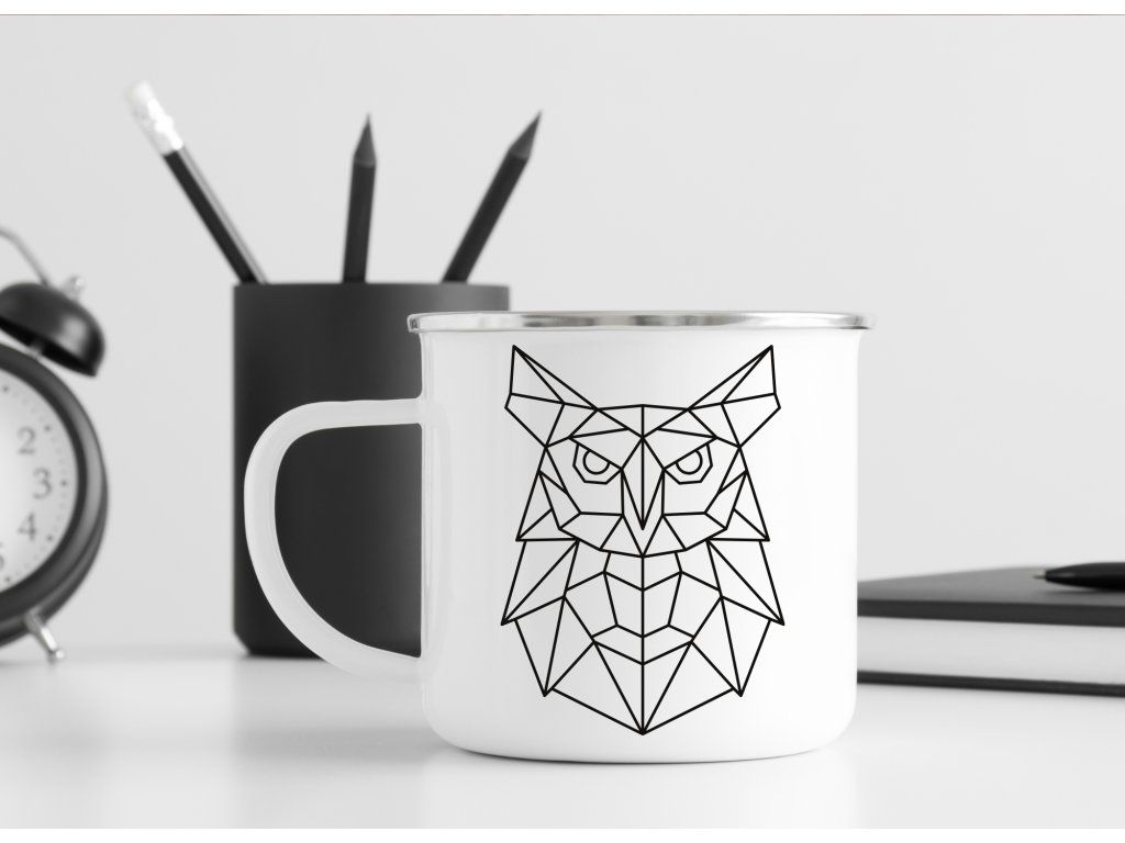 Stylový plecháček s motivem geometrické sovy potěší milovníky minimalistického designu, lesních motivů a originálních doplňků. Skvěle se hodí na doma, na cesty i jako hezký dárek.