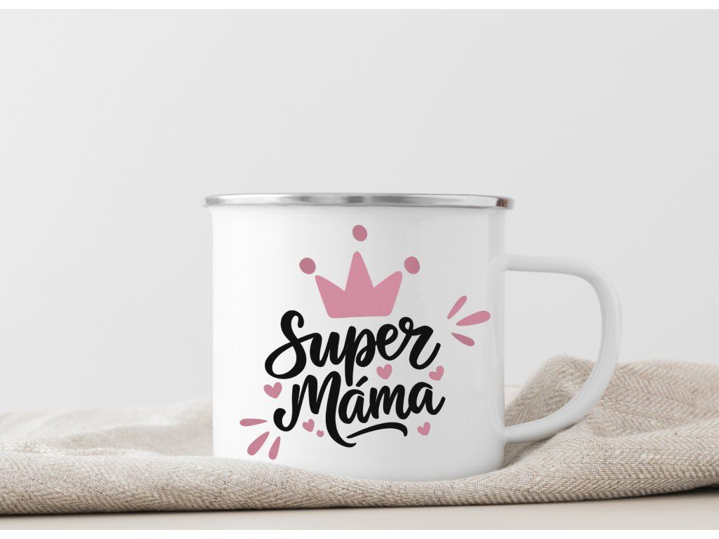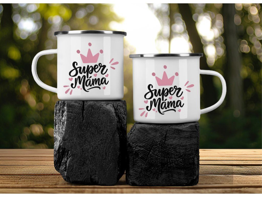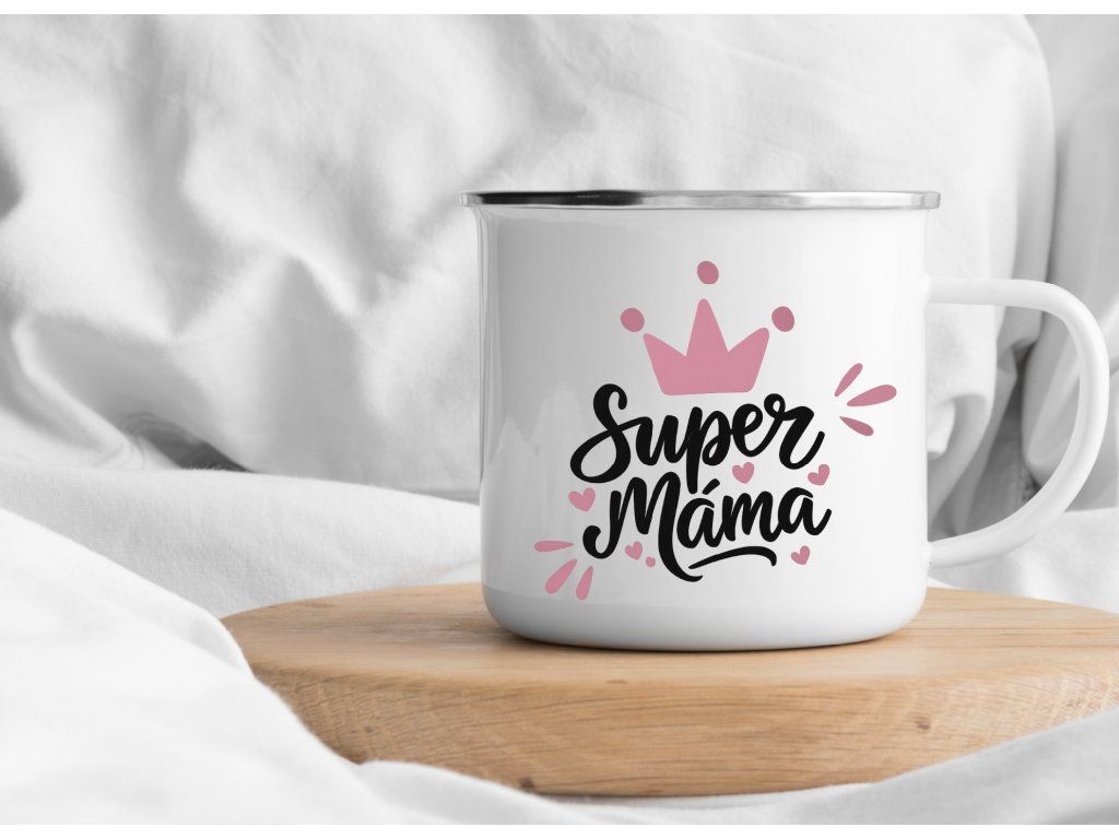 Smaltovaný plecháček pro maminku s nápisem Super máma 👑💗 Perfektní dárek na výlety, chalupu i každodenní pohodu.