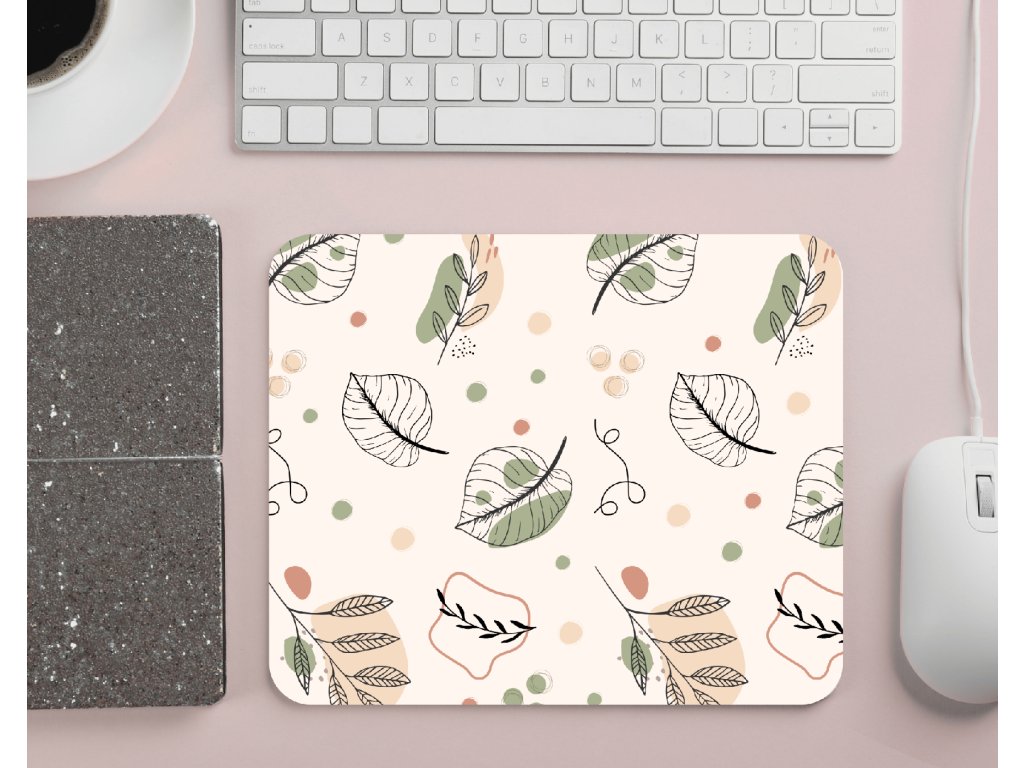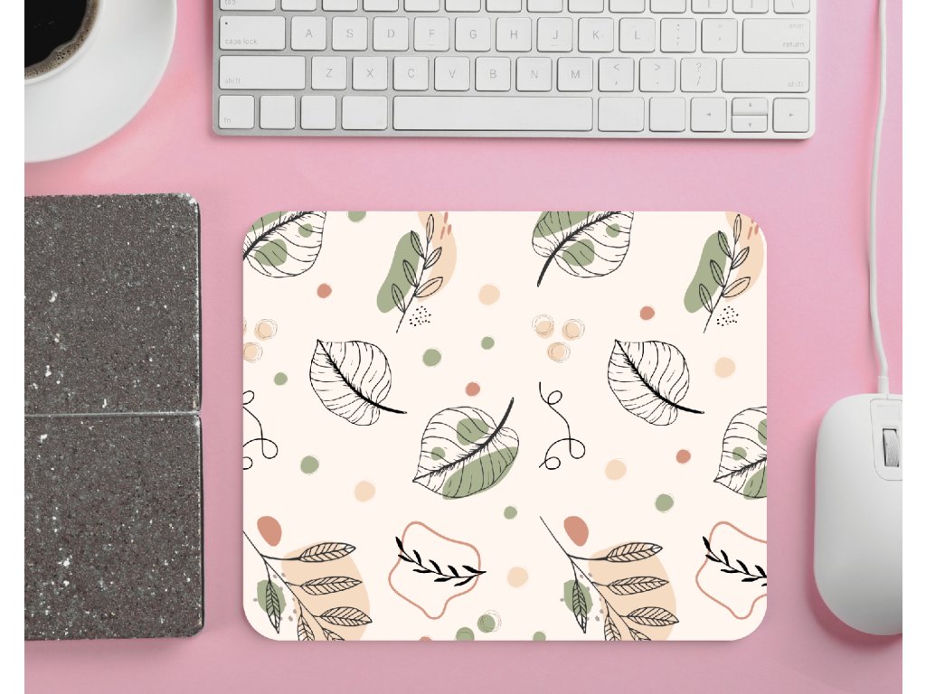 Aesthetic podložka pod myš s jemným motivem lístků a teček 🌿🤍 Minimalistický, přírodní design, který zútulní pracovní stůl doma i v kanceláři.