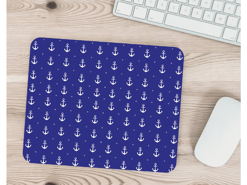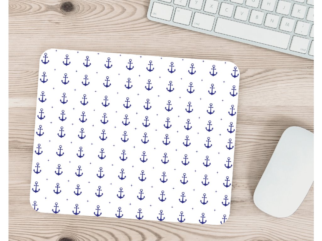 Stylová podložka pod myš s námořnickými kotvami ⚓ Vyber si bílou nebo modrou variantu a dodej pracovnímu stolu letní „sea vibe“ 🌊