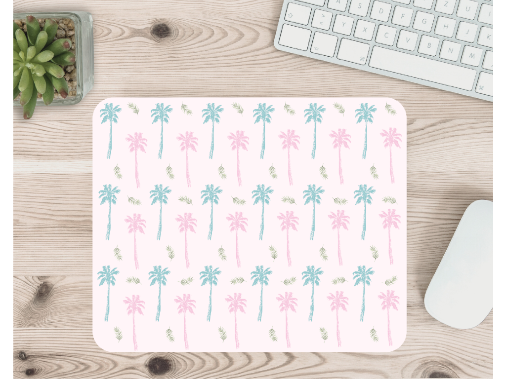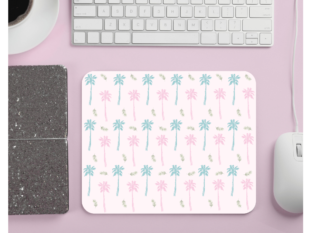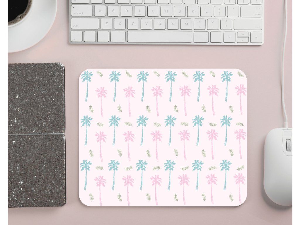 Stylová podložka pod myš s pastelovými palmami 🌴 Pro letní vibe na pracovním stole – doma i v kanceláři.