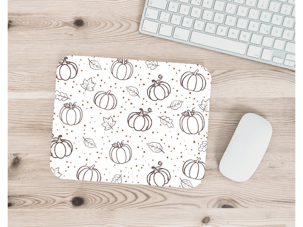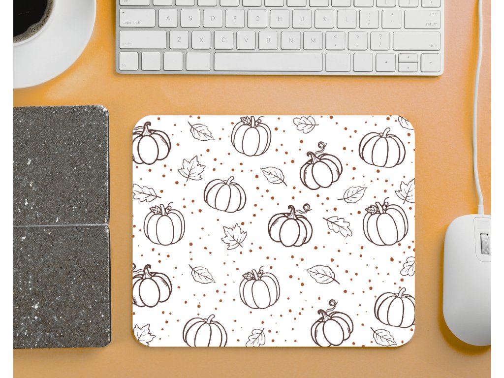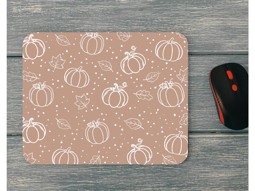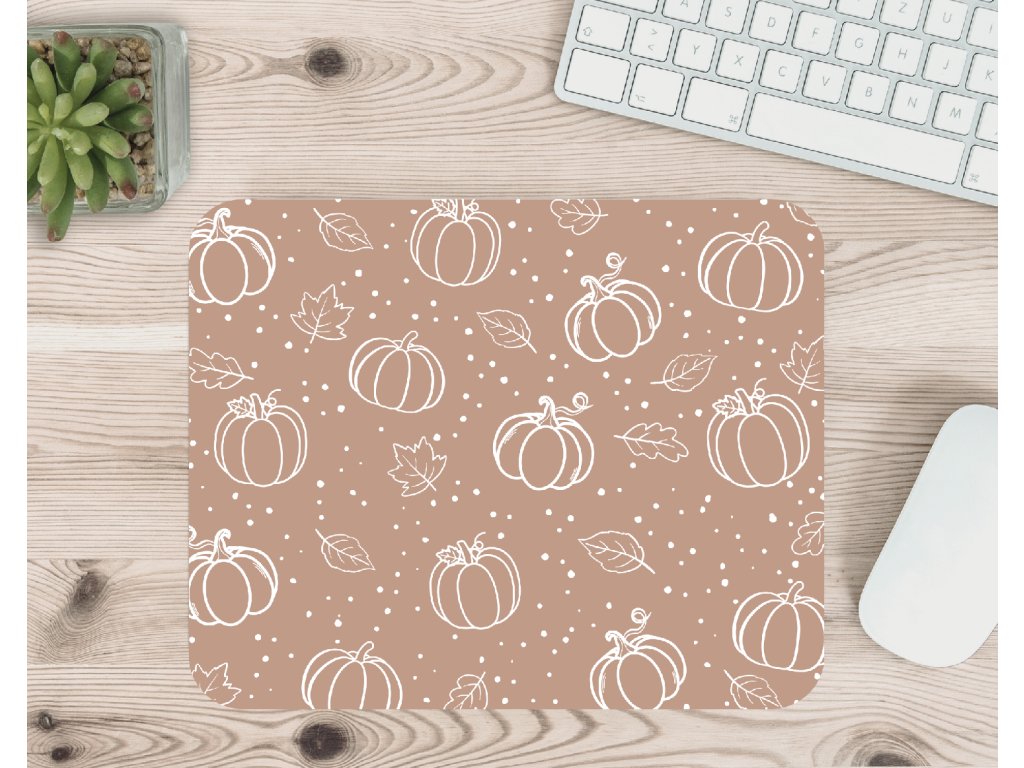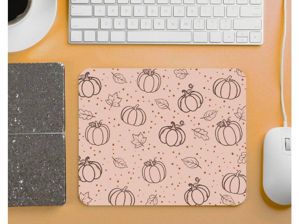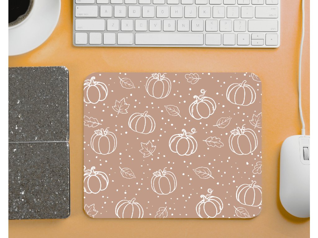 Stylová aesthetic podložka pod myš s motivem dýní a podzimních lístků. Skvělý doplněk na váš pracovní stůl, který vnese do každého dne nádech podzimu. 🍂🎃