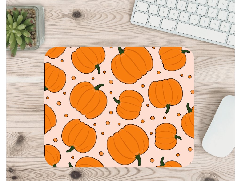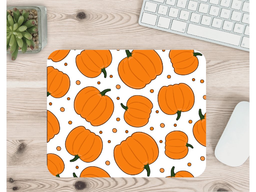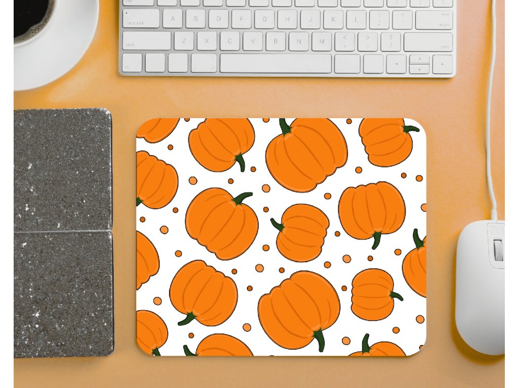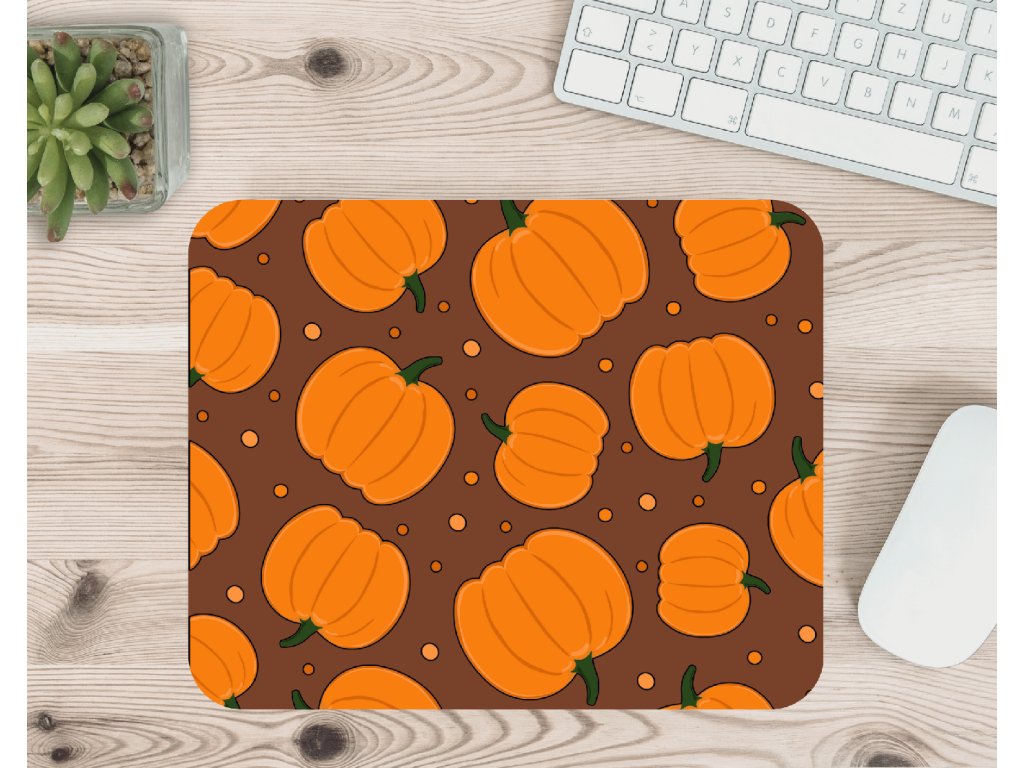 Stylová podzimní podložka pod myš s veselým motivem oranžových dýní. Dostupná ve 3 variantách pozadí – hnědé, béžové a bílé. Perfektní doplněk pro váš pracovní stůl v podzimním stylu. 🍂🎃