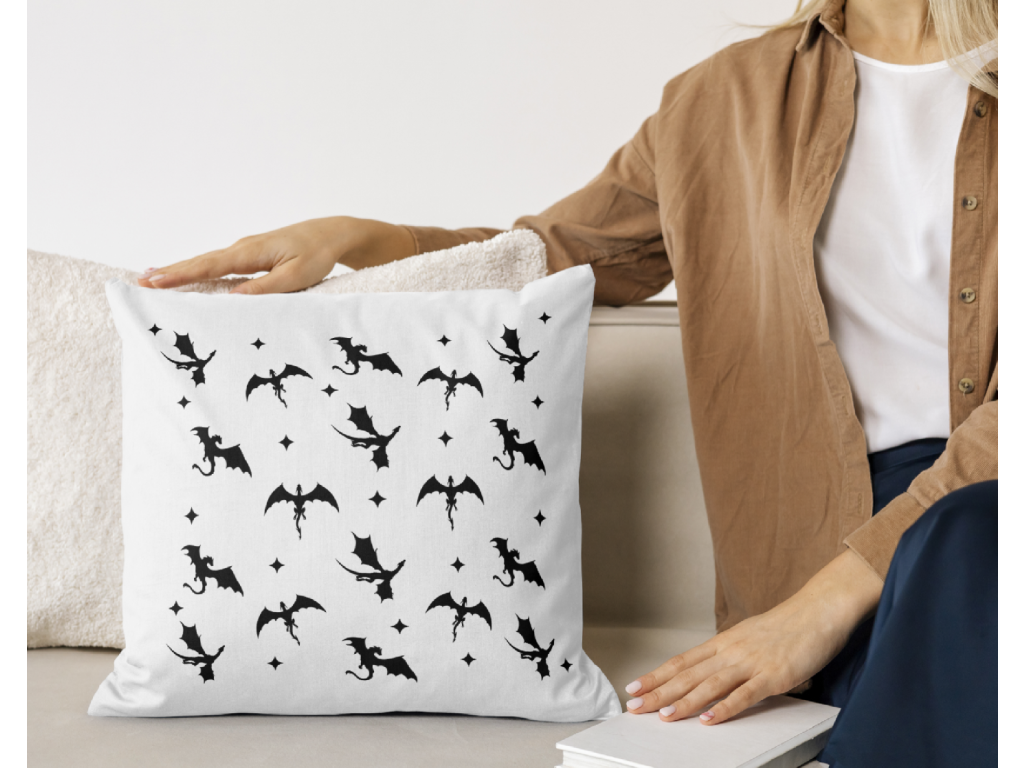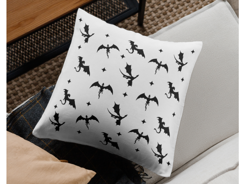 40x40 cm - povlak na polštářek s motivem draků potěší milovníky fantasy, tajemných motivů a minimalistického designu. Stylový doplněk do interiéru i jako krásný dárek pro knihomoly