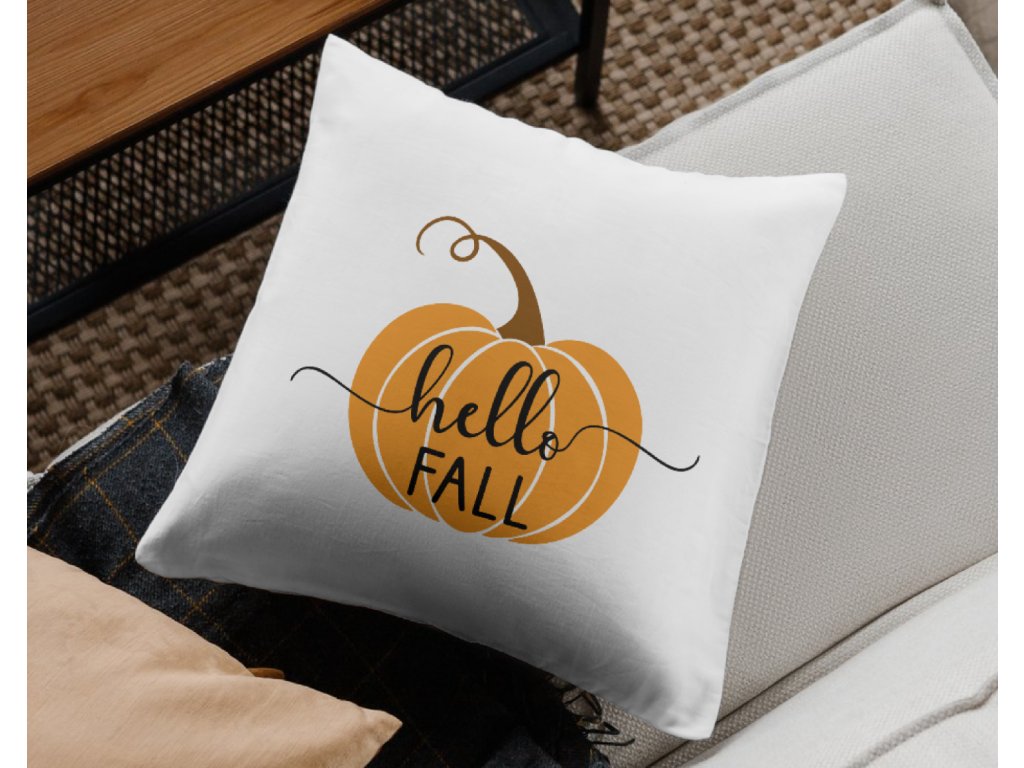 40x40 cm - Podzimní povlak na polštář s motivem dýně a nápisem Hello Fall – perfektní dekorace pro váš útulný domov. 🎃🍂
