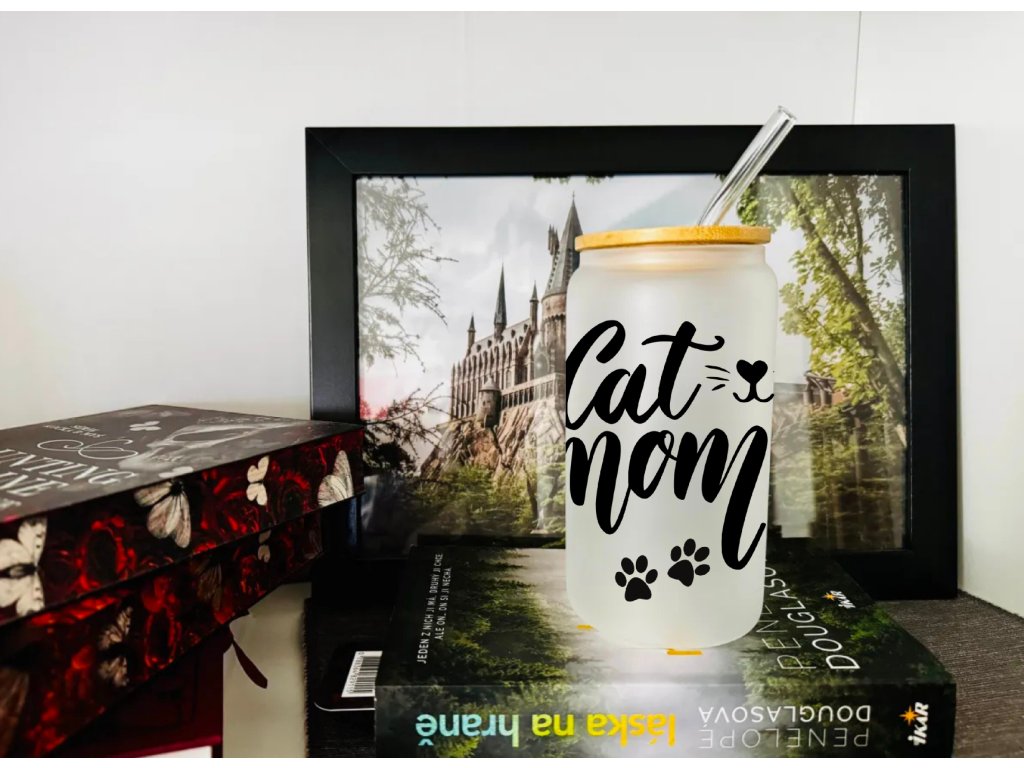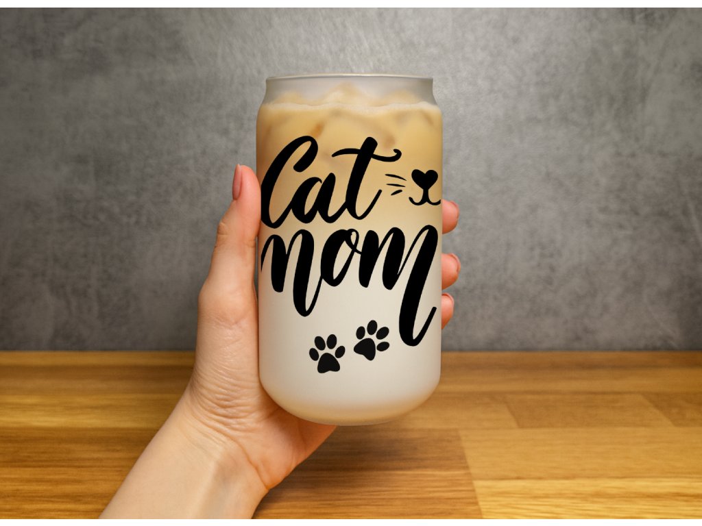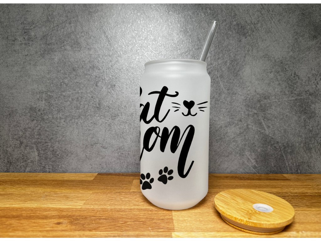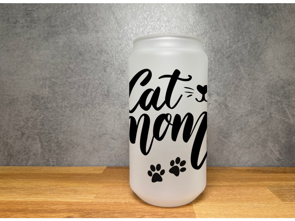 550 ml - Matná sklenička ve tvaru plechovky - Cat Mom - kočičí máma - kočka
