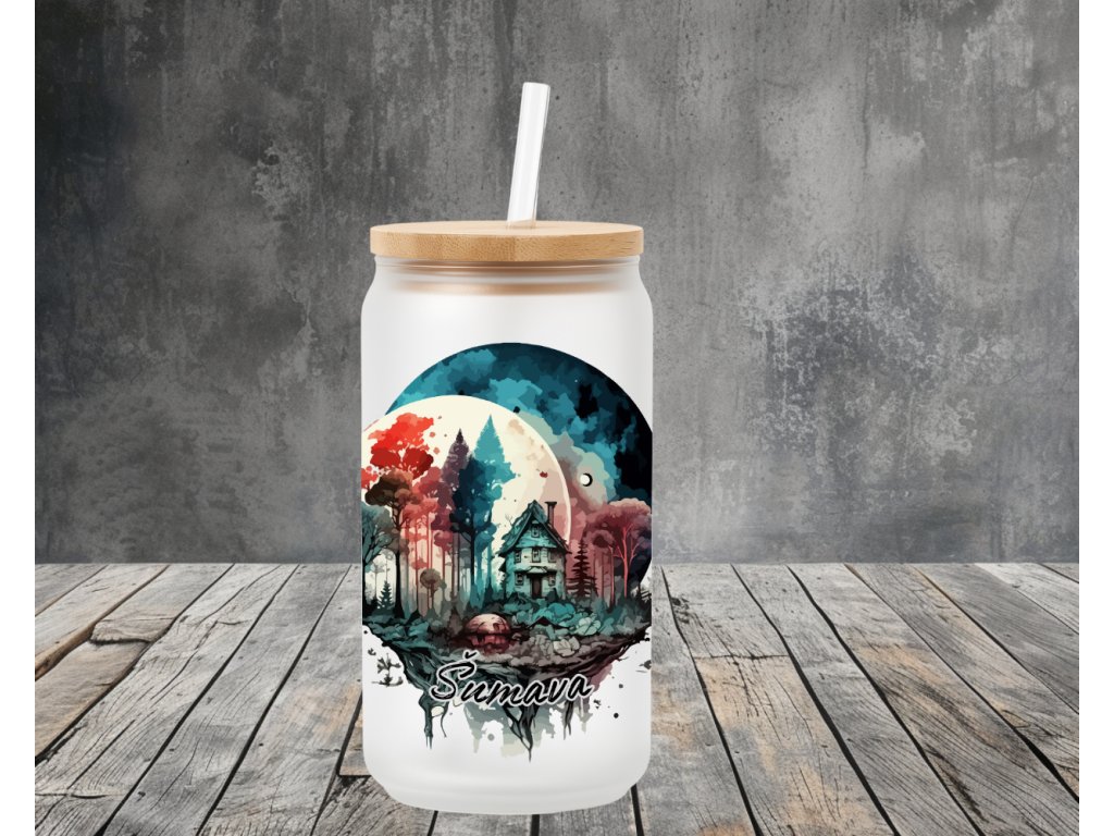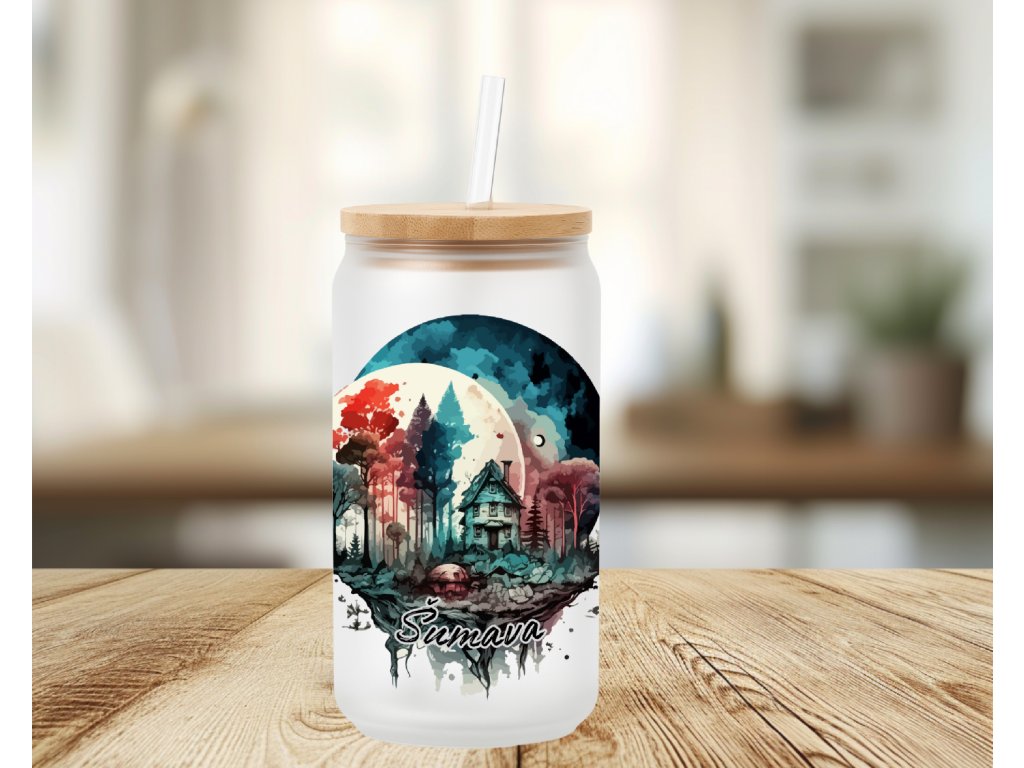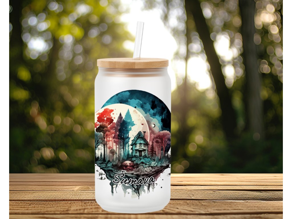 550 ml - Sklenička s potiskem - Šumava - krajinka s měsícem