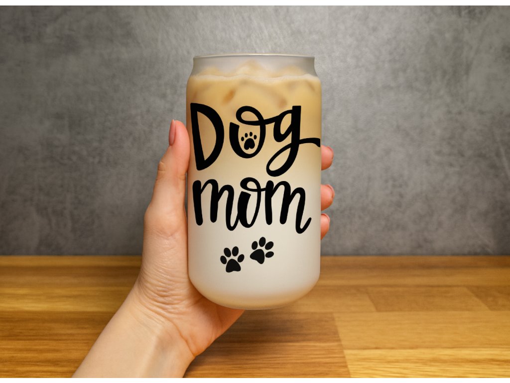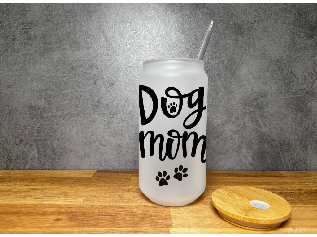 550 ml - Matná sklenička ve tvaru plechovky pro psí mámy - Dog Mom - Pes