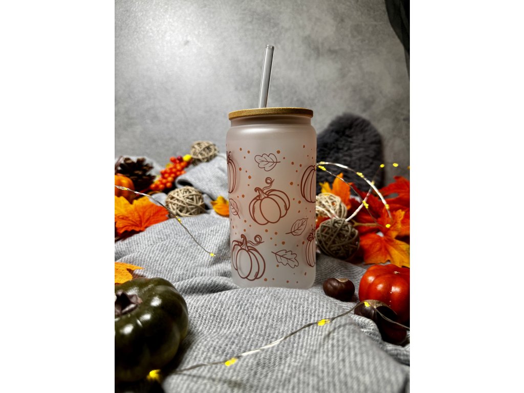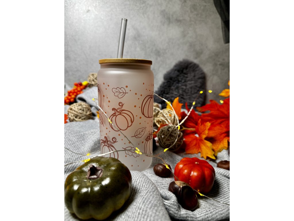 Vychutnejte si svou oblíbenou kávu, čaj, limonádu nebo smoothie ve stylu podzimu s touto elegantní matnou skleničkou o objemu 550 ml. Jemný estetický design s motivem dýní, listů a drobných puntíků navodí příjemnou podzimní atmosféru a promění každý nápoj v jedinečný zážitek.