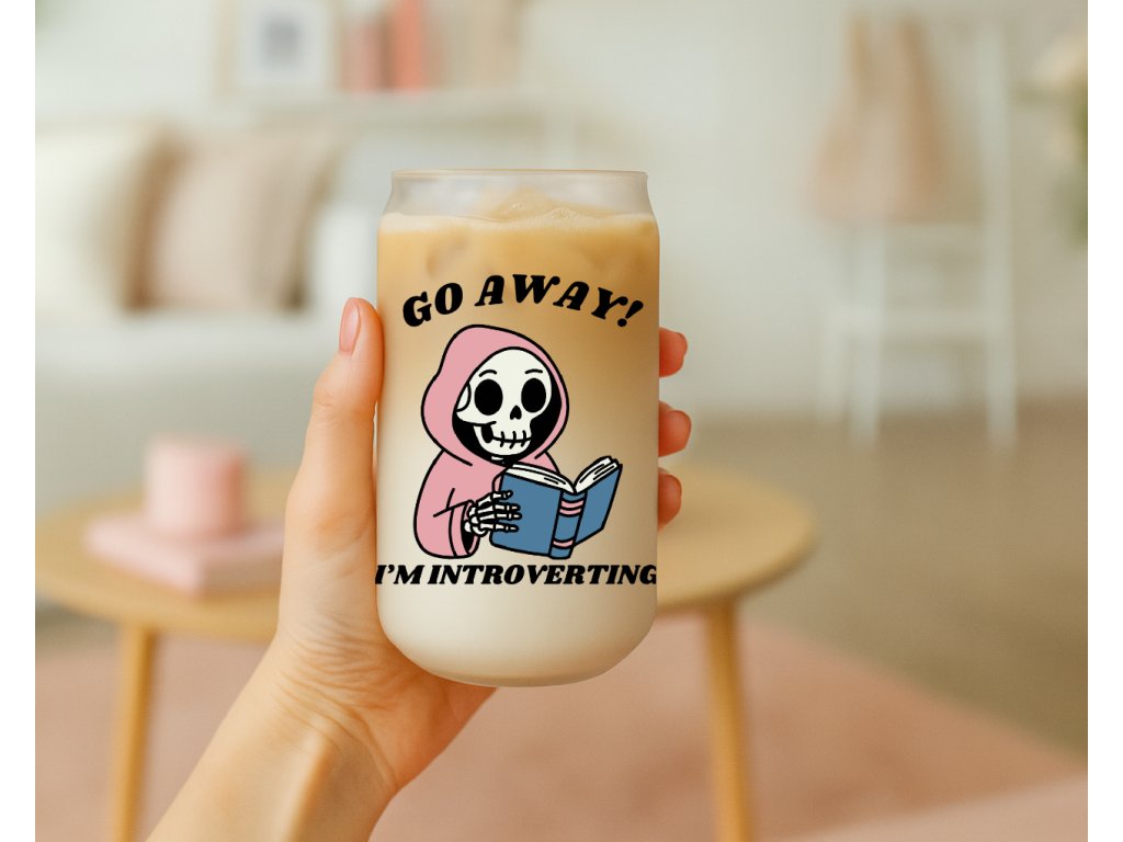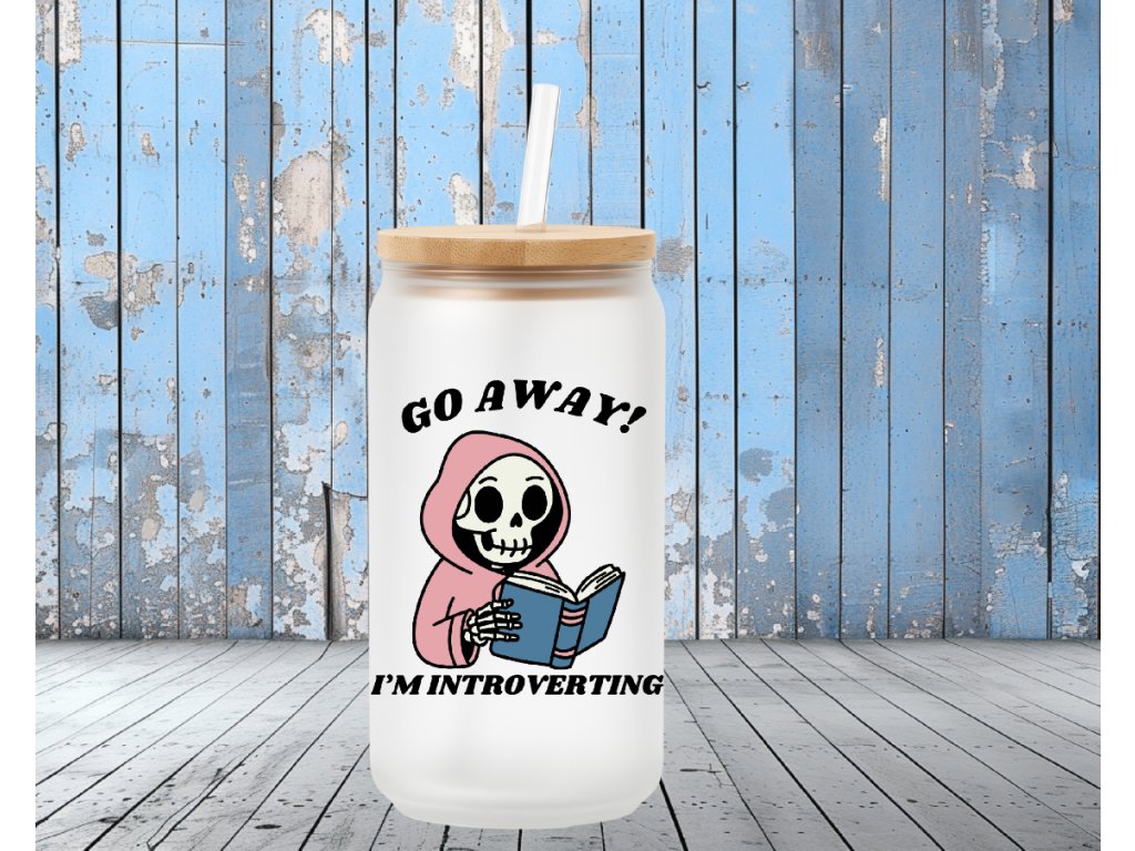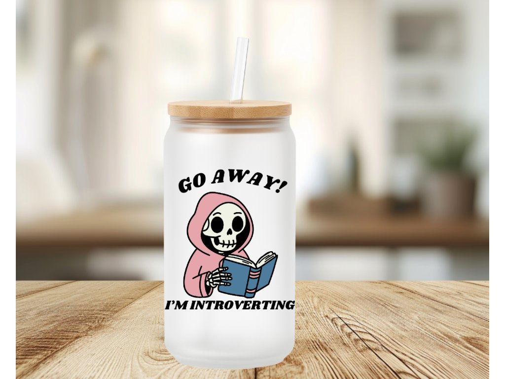 550 ml - Matná sklenička s kostrou pro introverty - Go Away! I'm introverting