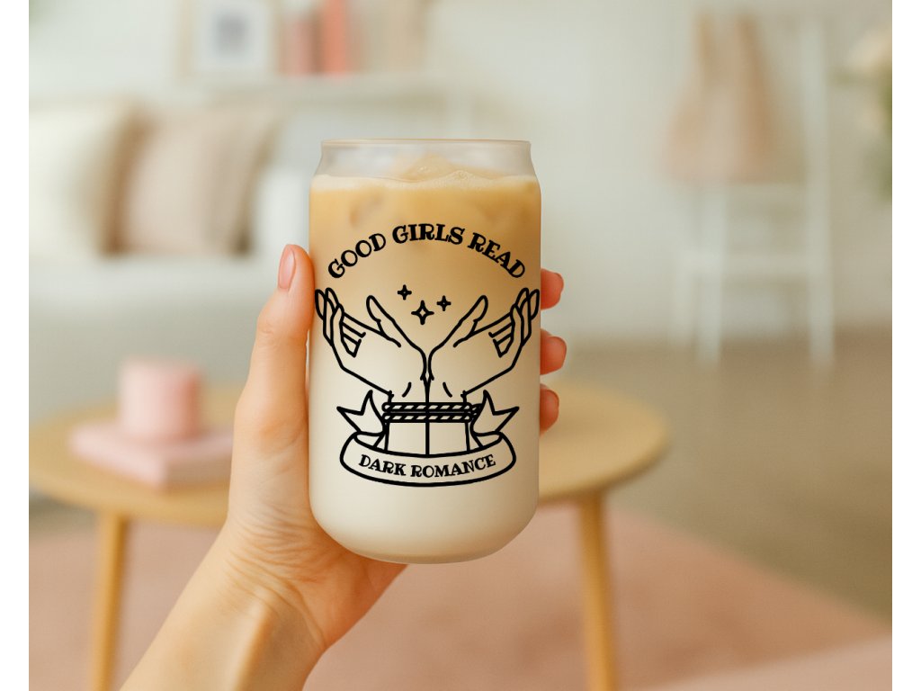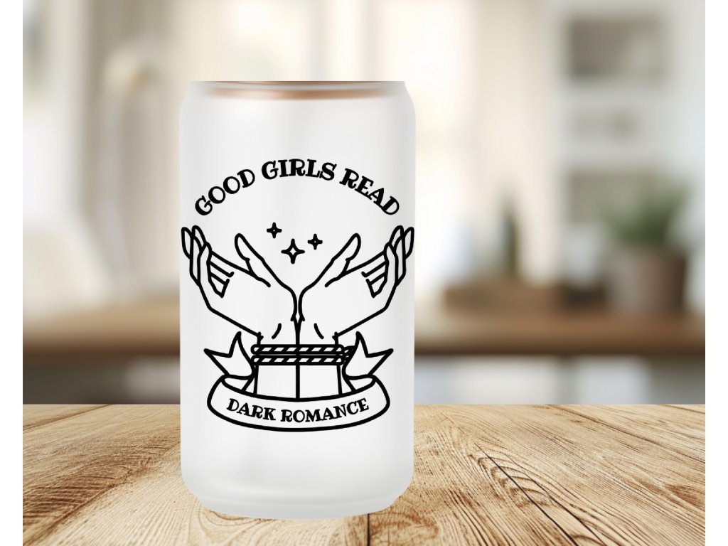 550 ml - Matná sklenička ve tvaru plechovky s nápisem Good Girls Read Dark Romance – pro čtenářky, které milují temné příběhy a silné emoce 📚✨