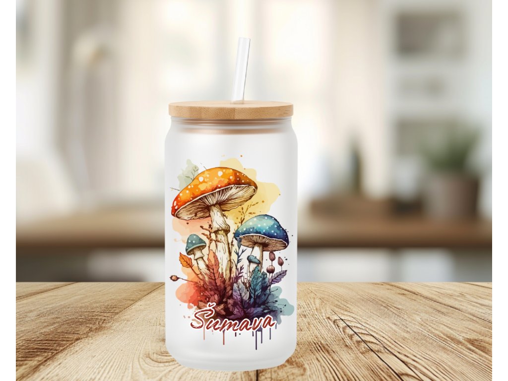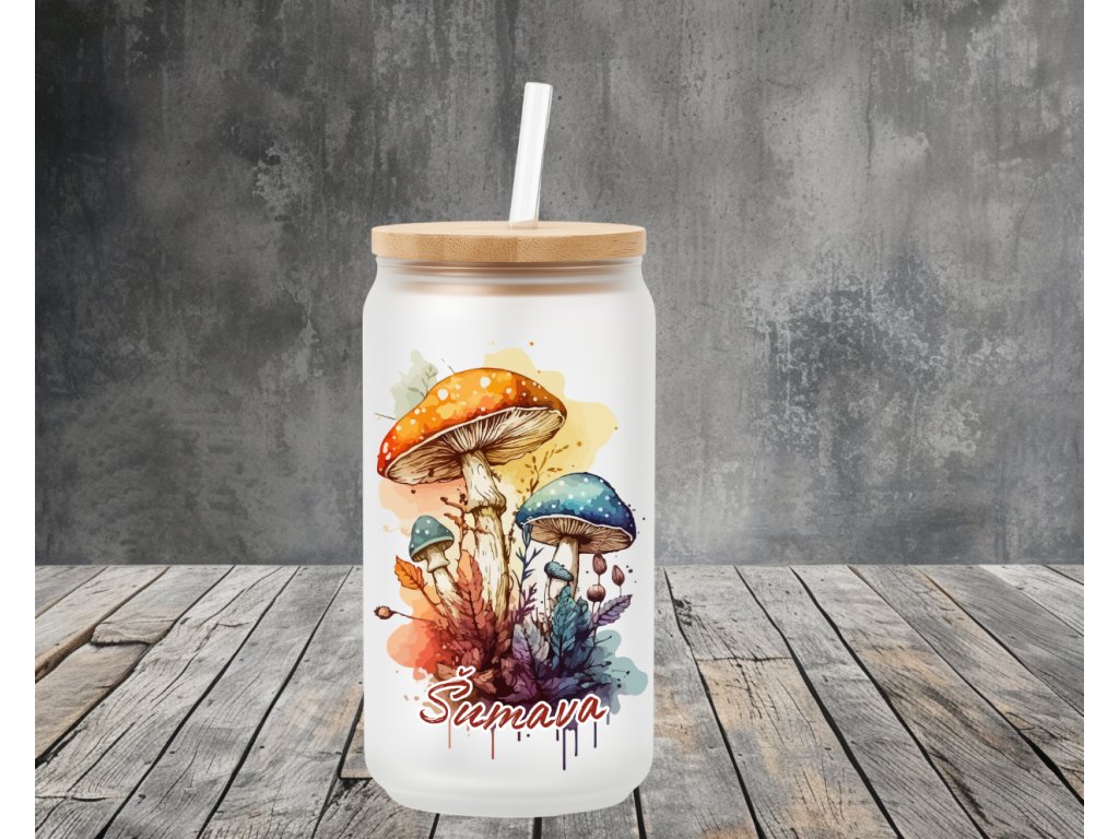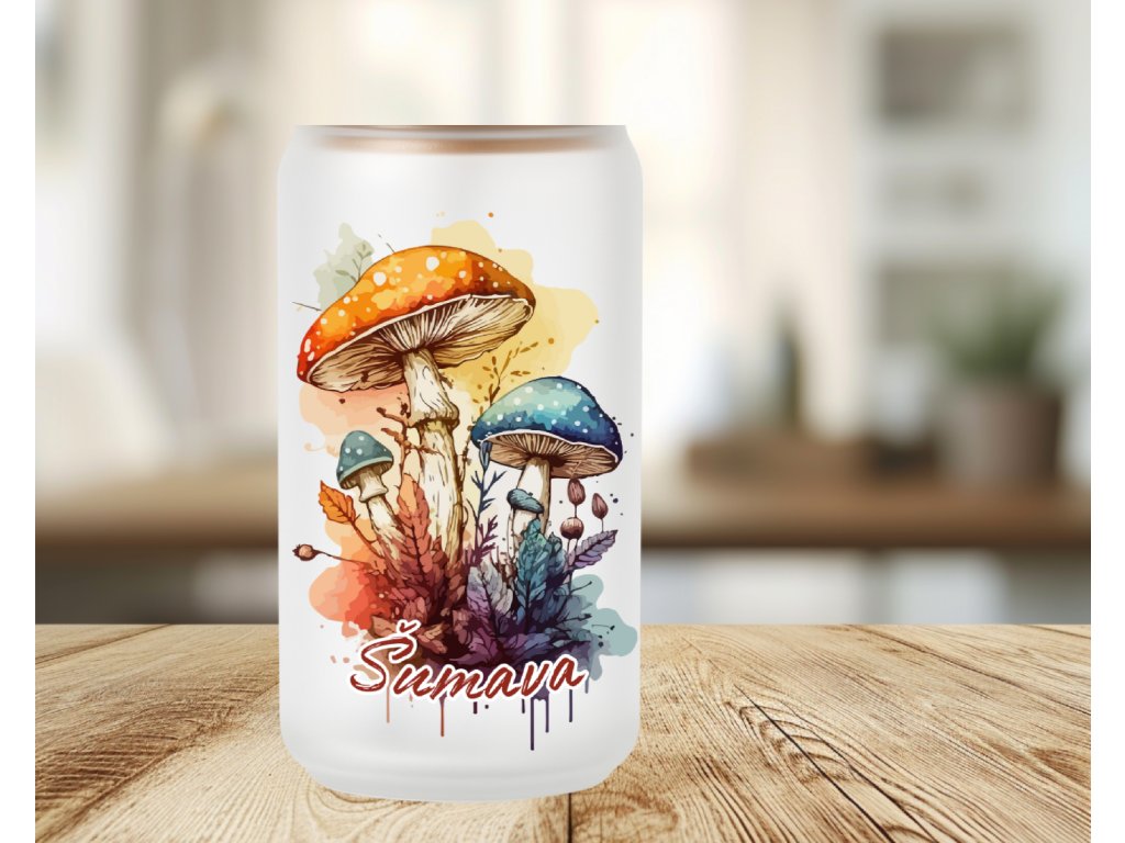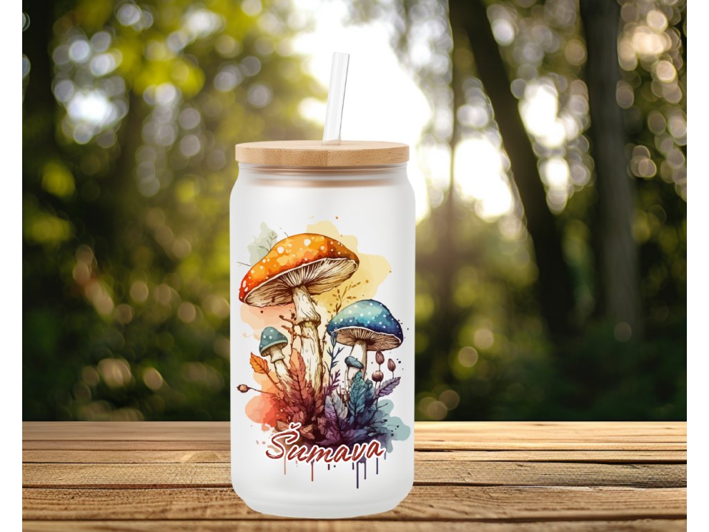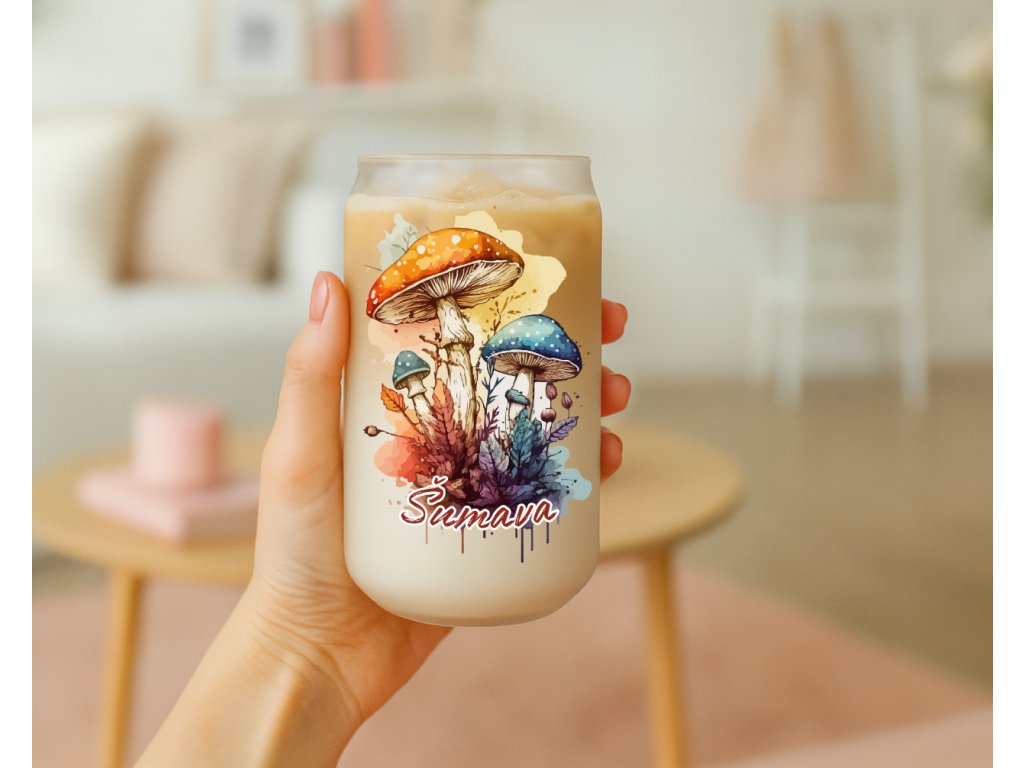 Pestrobarevný design hub s podzimními tóny přináší do každého dne kousek šumavské přírody. Sklenička s motivem lesních hub potěší každého milovníka lesa, přírody a originálních ručně vyráběných doplňků. Ideální na vodu, limonádu nebo ledovou kávu.
