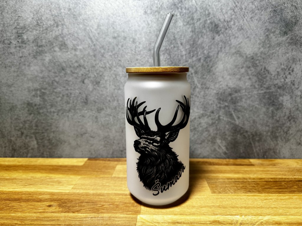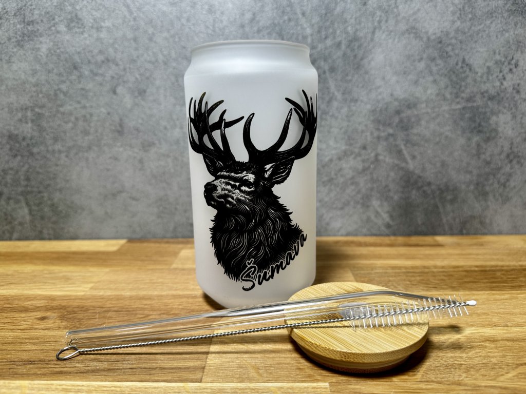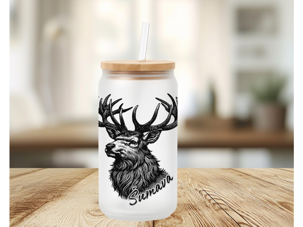 Elegantní a výrazný potisk jelena v černobílém provedení dodává skleničce luxusní vzhled. Tento šumavský motiv působí majestátně a zároveň minimalisticky – hodí se jako dekorace i každodenní doplněk.