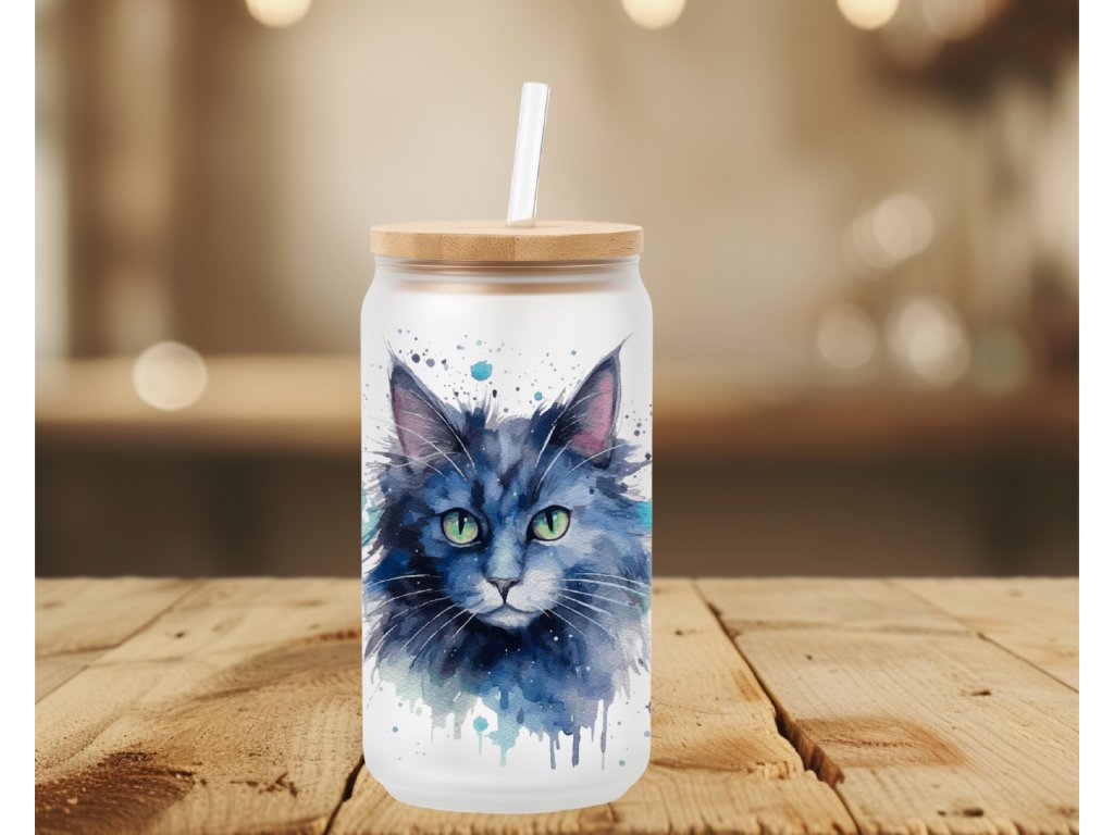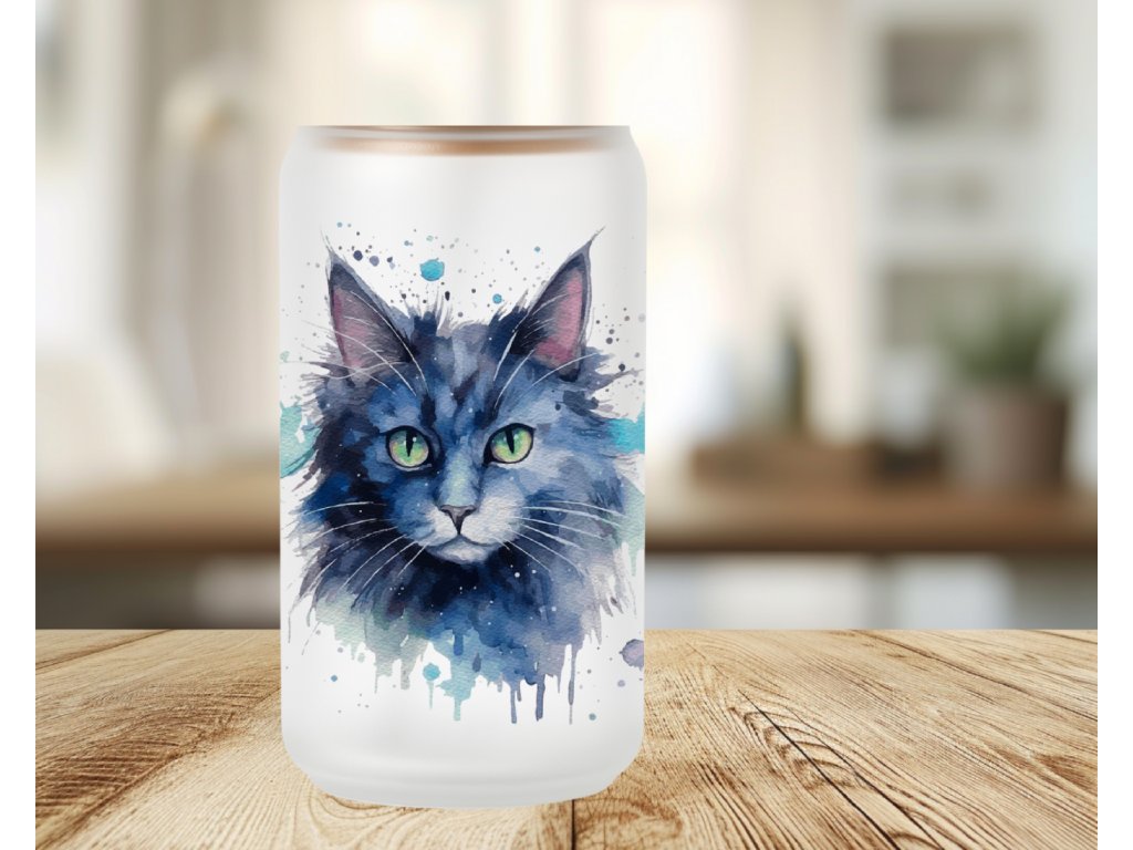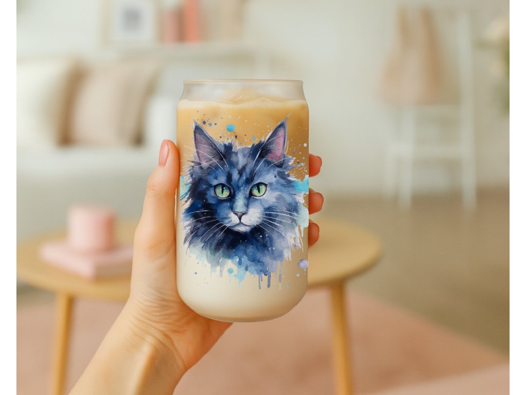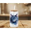550 ml - Matná sklenička s modrou kočkou – výrazný akvarelový motiv pro milovníky koček a originálního designu 💙🐱