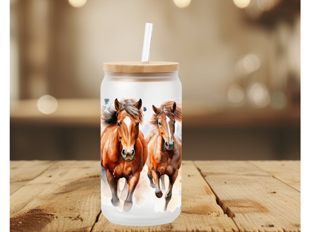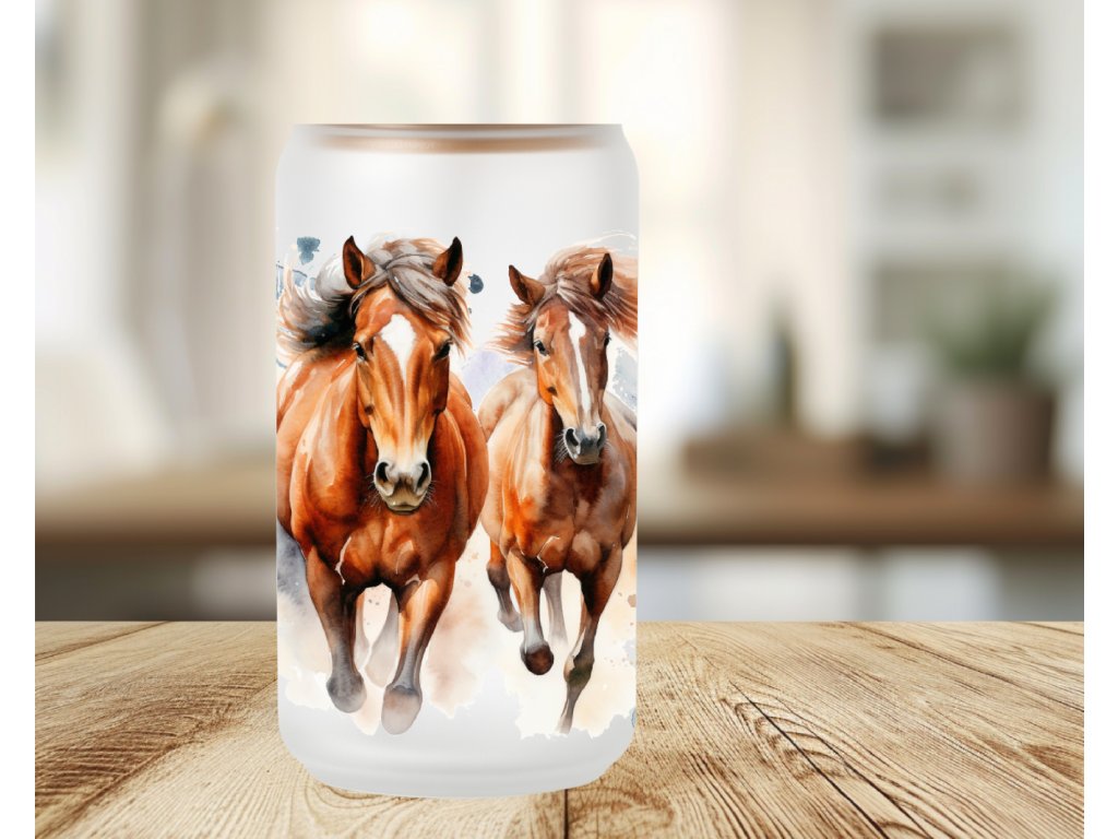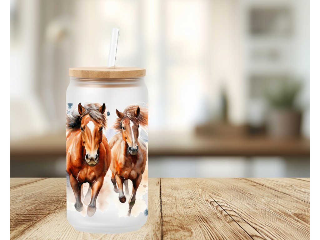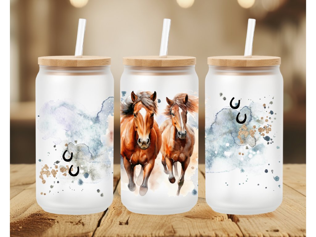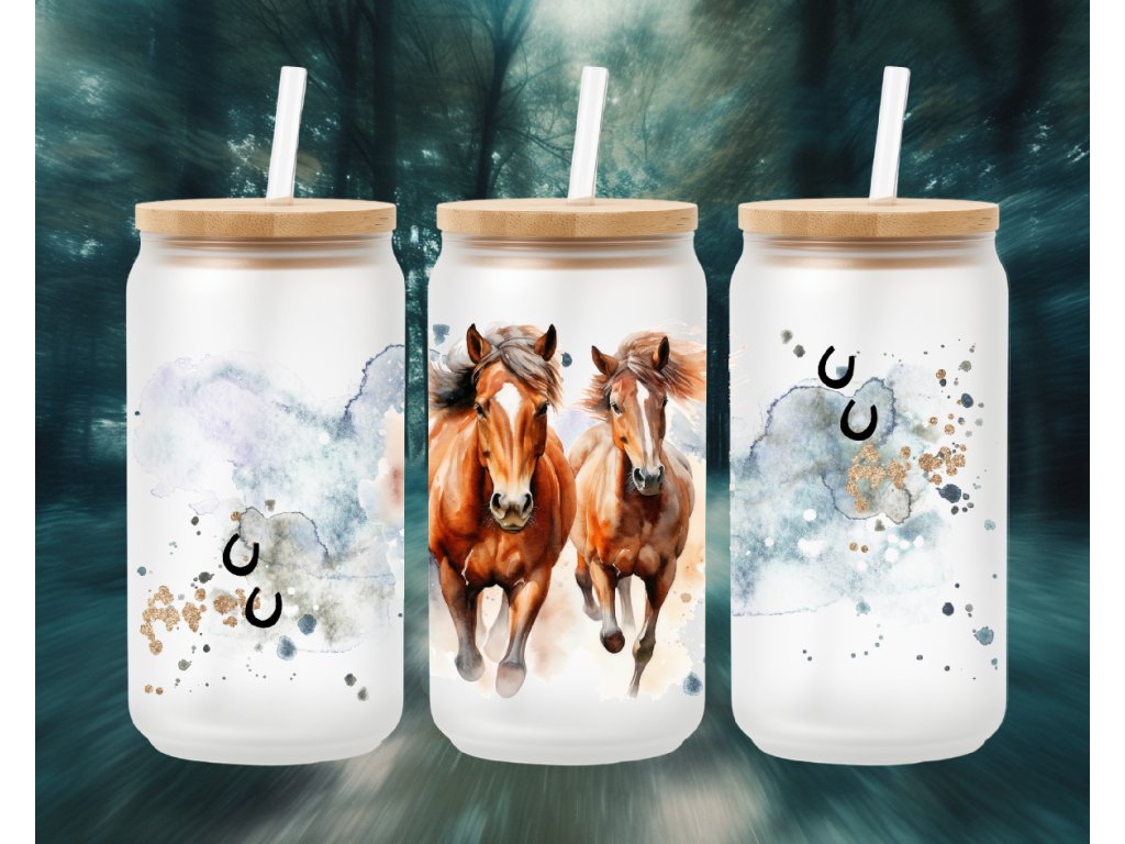 550 ml - Matná sklenička s motivem koní – jemný akvarelový design pro milovníky koní a svobody 🐎✨