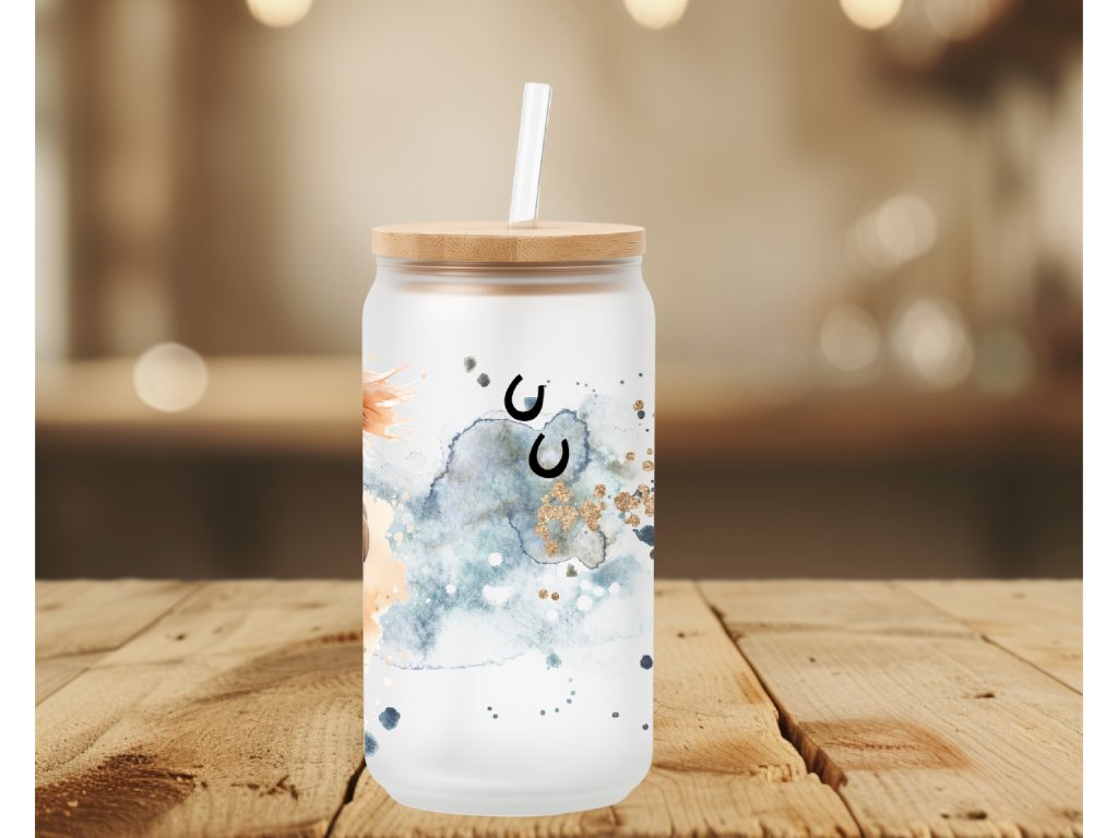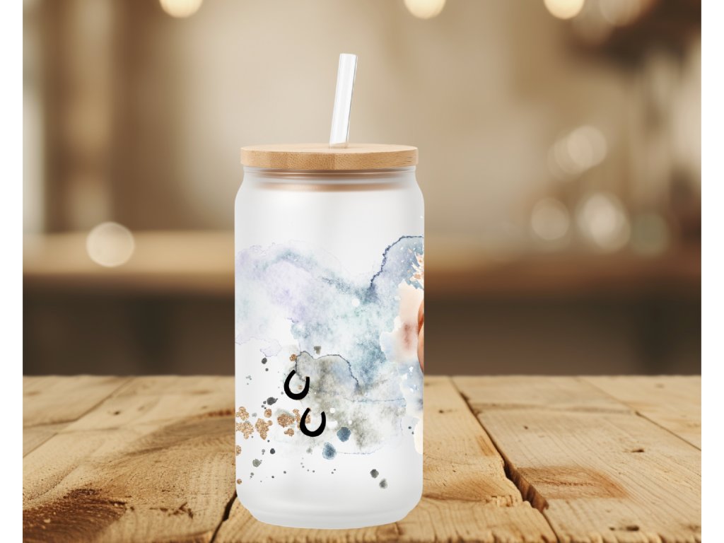 Síla, svoboda a klid přírody v jednom motivu 🐎 Tato sklenička s motivem koní a podkov zaujme detailní akvarelovou ilustrací dvou běžících koní, doplněnou jemnými abstraktními plochami a symbolikou podkov pro štěstí. Design působí elegantně, přírodně a zároveň velmi emotivně.