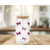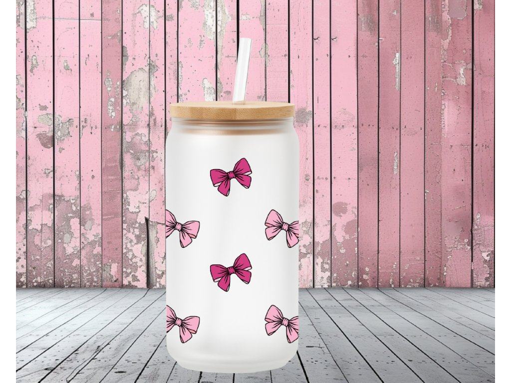 550 ml - Matná sklenička ve tvaru plechovky s růžovými mašličkami