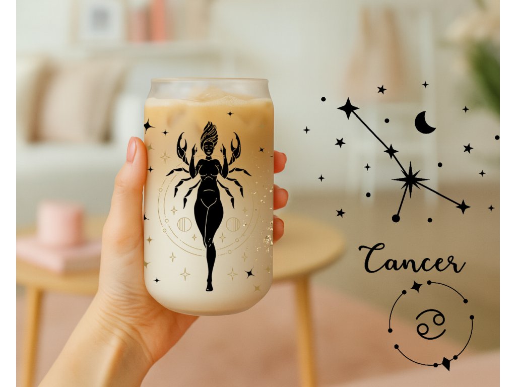 ♋✨ Sklenička Rak – Cancer pro citlivé duše, které milují domov, pohodu a jemnou estetiku. Stylový motiv zvěrokruhu je krásný dárek k narozeninám i radost na každý den. 🥤