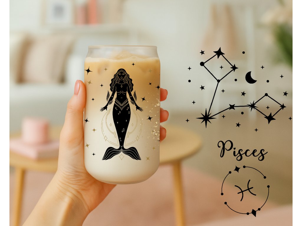 ♓✨ Sklenička Ryby – Pisces pro snílky s jemnou duší a láskou k magii detailů. Elegantní motiv zvěrokruhu je krásný dárek k narozeninám i radost na každý den. 🥤