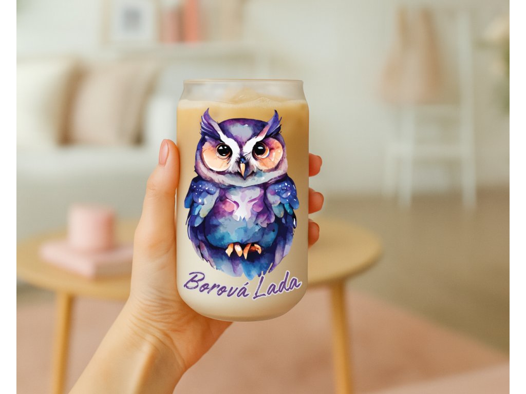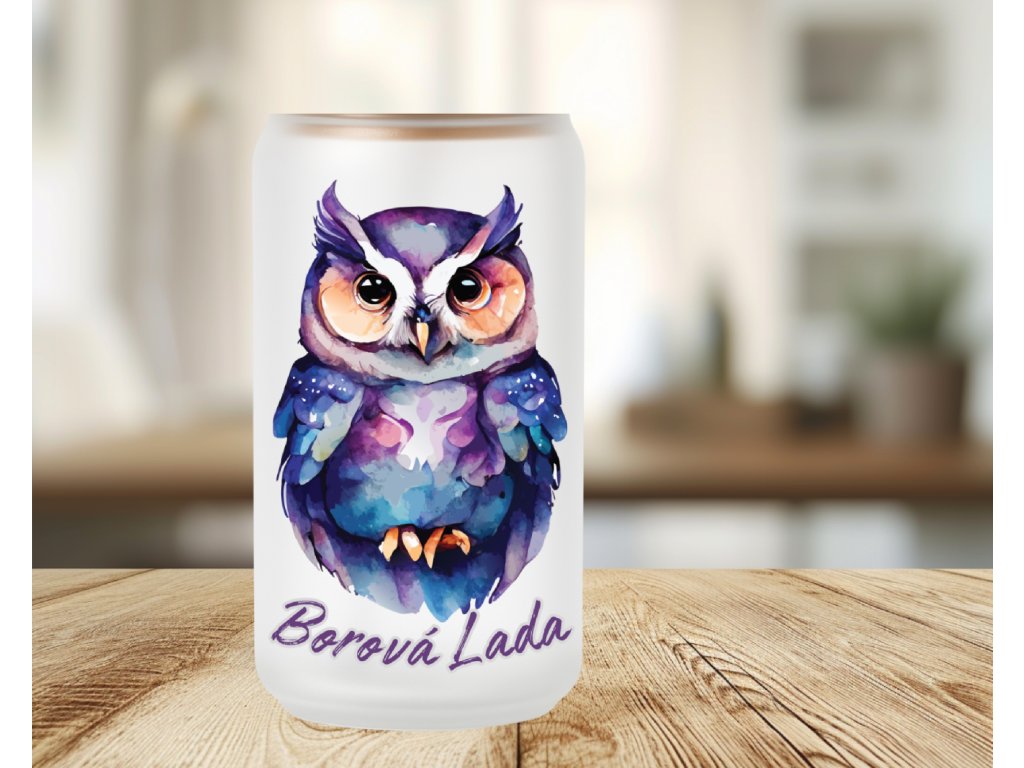 Sklenička se sovou – fialová – Borová Lada 🦉