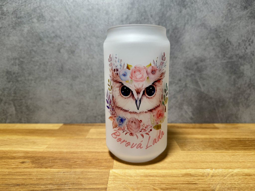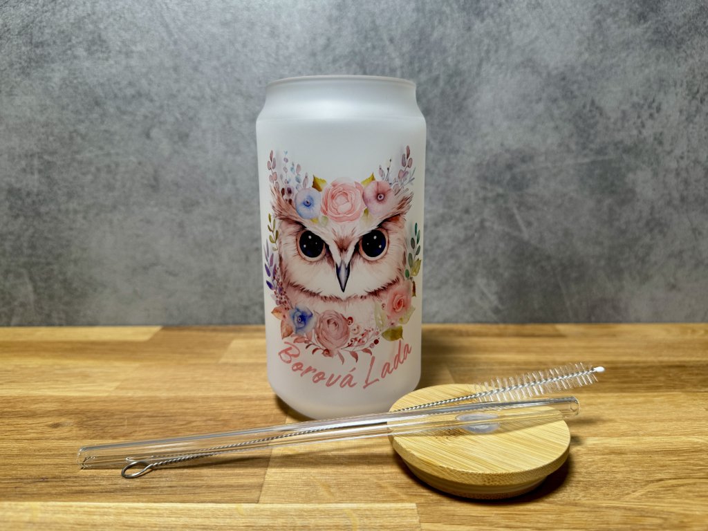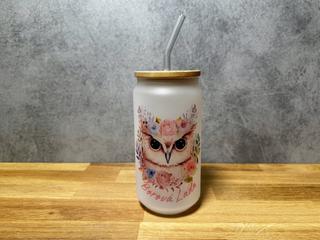 550 ml - Sklenička se sovičkou – růžová – Borová Lada