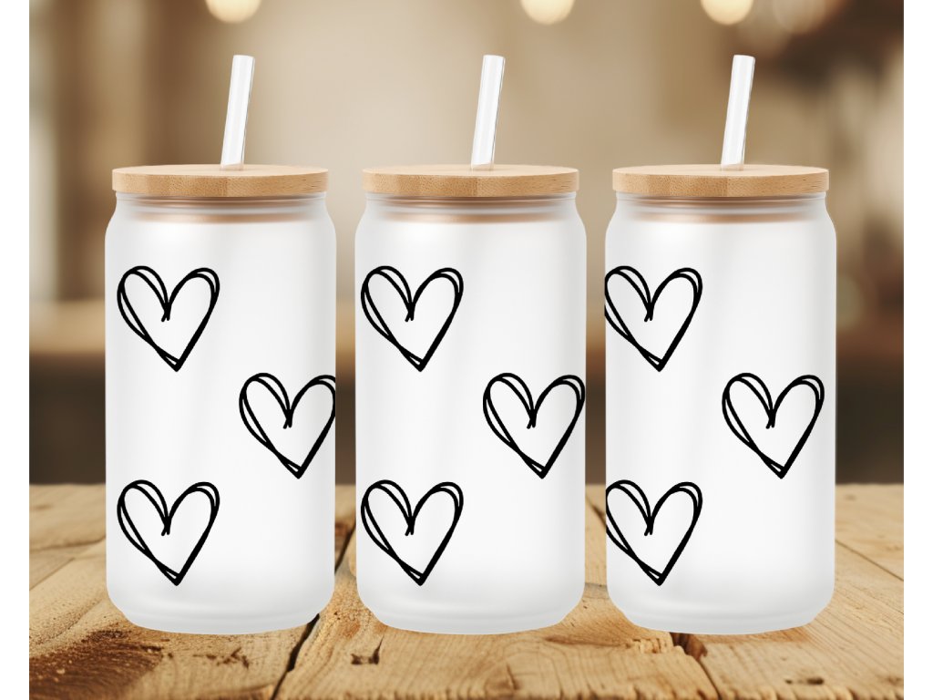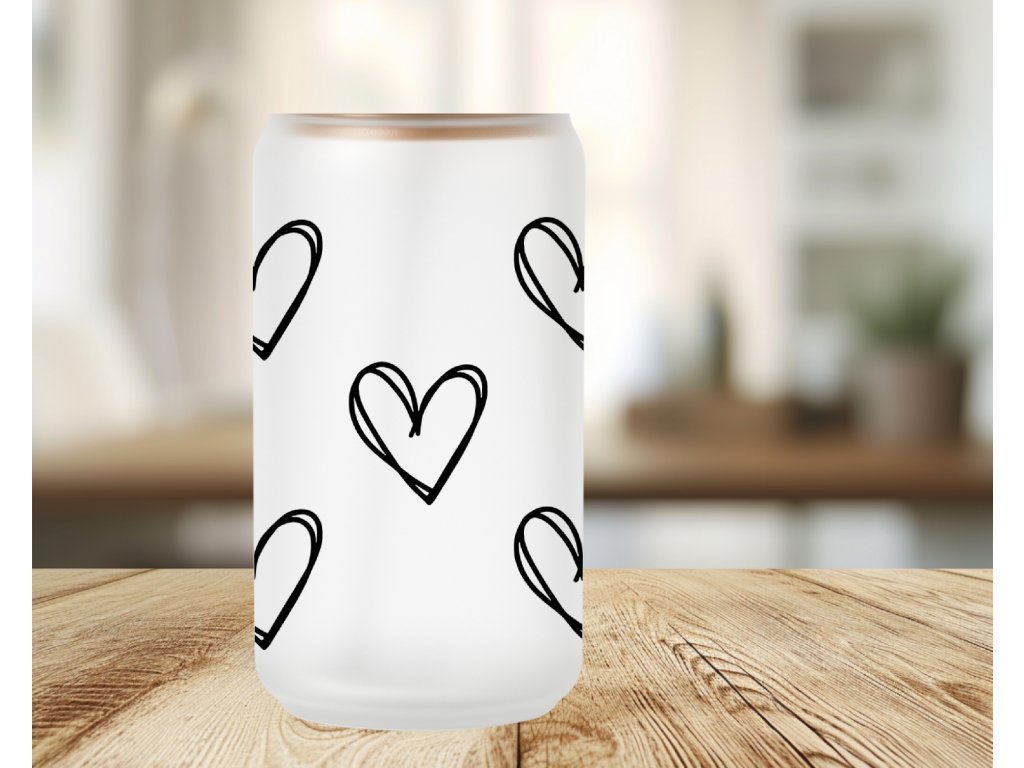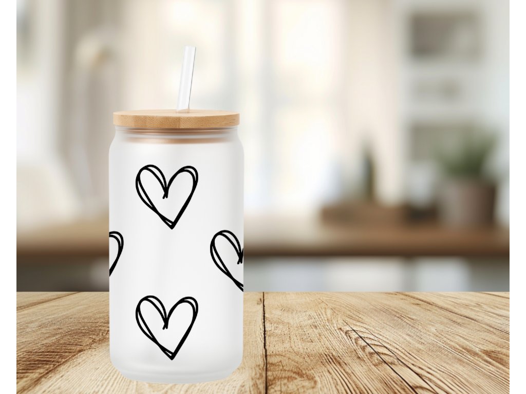 550 ml - Stylová matná sklenička s obrysy černých srdíček 🖤 ideální pro všechny milovníky drobných detailů. Dostupná samostatně nebo v setu s víčkem a brčkem.