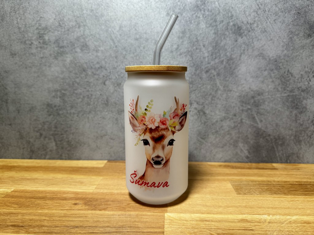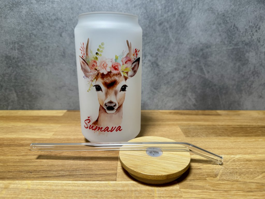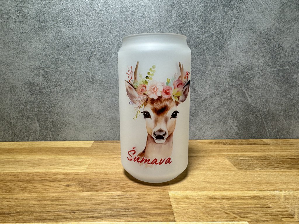 Sklenička se srnkou s květinovou čelenkou působí jemně a romanticky. Motiv doplňuje nápis Šumava, který vám připomene krásy lesní krajiny. Perfektní dárek pro milovníky klidné přírody, ideální do každé domácnosti i jako osobitý suvenýr.