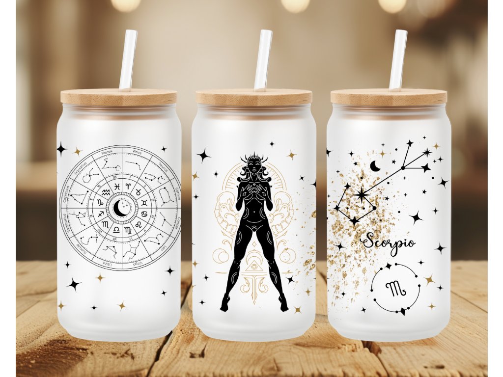 Sklenička Štír – Scorpio ♏ je pro osobnosti, které nepotřebují křičet, aby byly vidět. Štír je symbolem intenzity, síly a tajemství – a přesně tohle vyzařuje i tento design. Kombinace souhvězdí, hvězdných detailů a jemného zlatavého efektu působí luxusně, elegantně a trochu „magicky“.