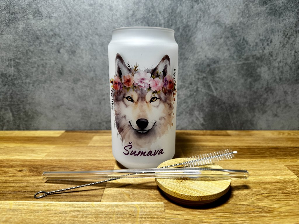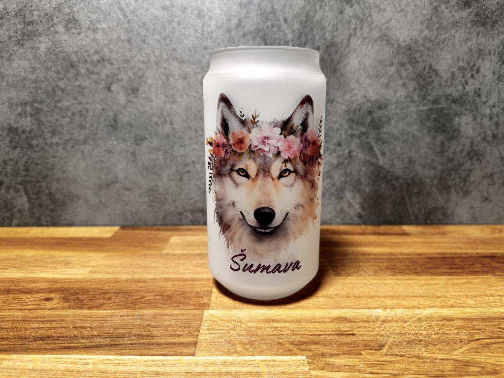 550 ml - Sklenička ve tvaru plechovky s vlkem - Šumava